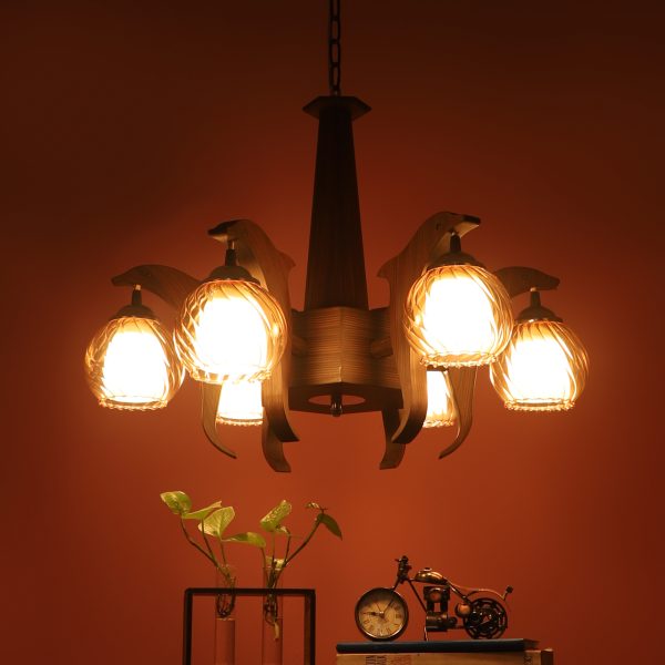 LEARC Designer Lighting Contemprory Glass Metal Wood Chandelier CH510-6