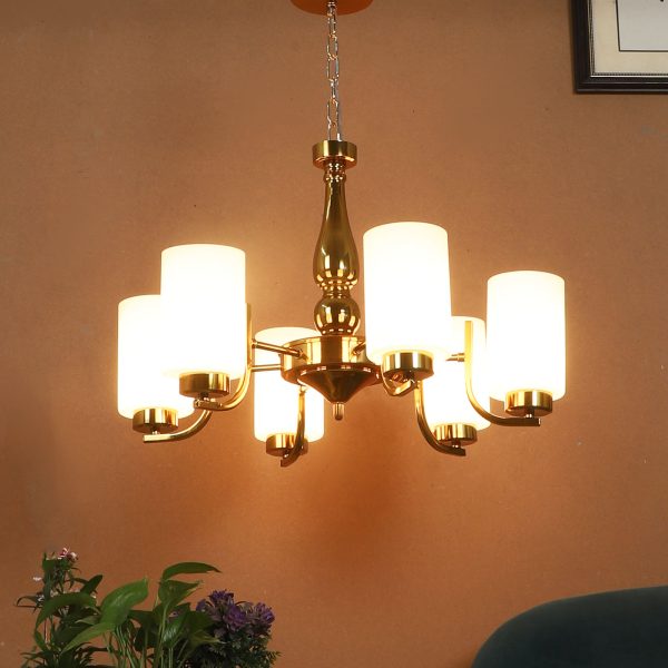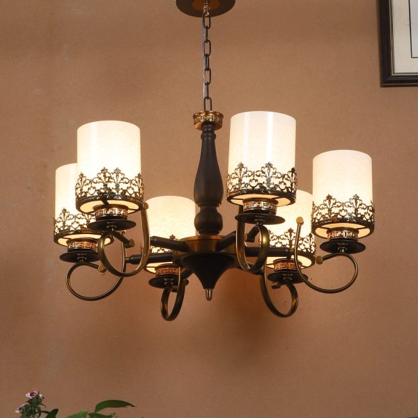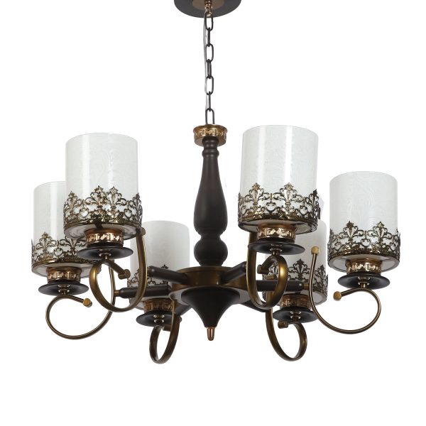 LEARC Designer Lighting Contemporary Glass Metal Wood Chandelier CH497-6-DN