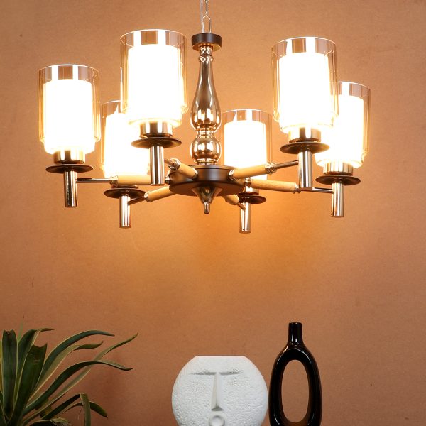 LEARC Designer Lighting Contemprory Glass Metal Wood Chandelier CH512-6