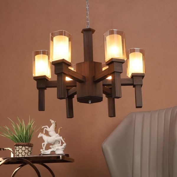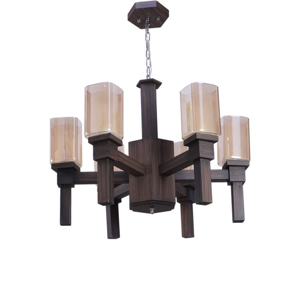 LEARC Designer Lighting Contemporary Glass Metal Wood Chandelier CH394