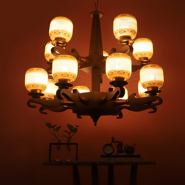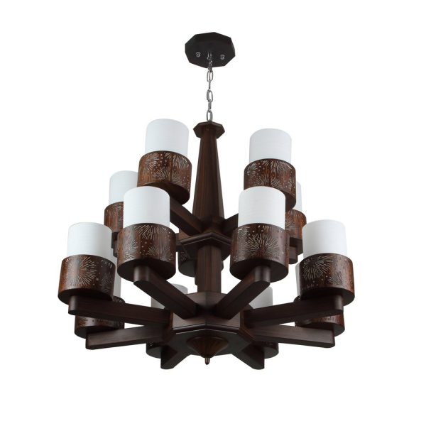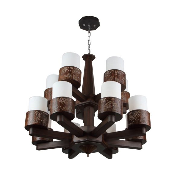 LEARC Designer Lighting Contemporary Glass Metal Wood Chandelier CH428-13