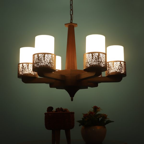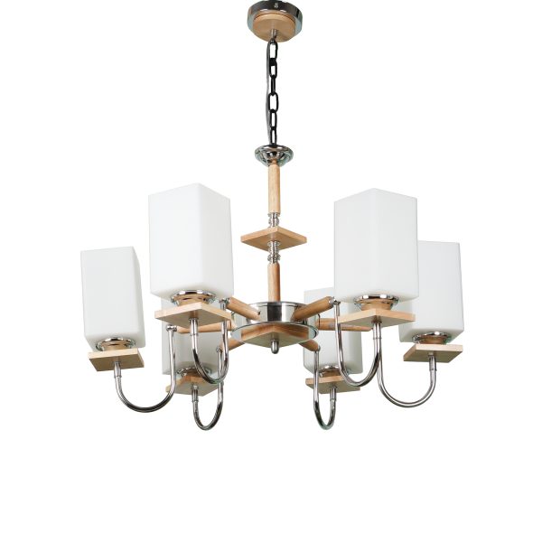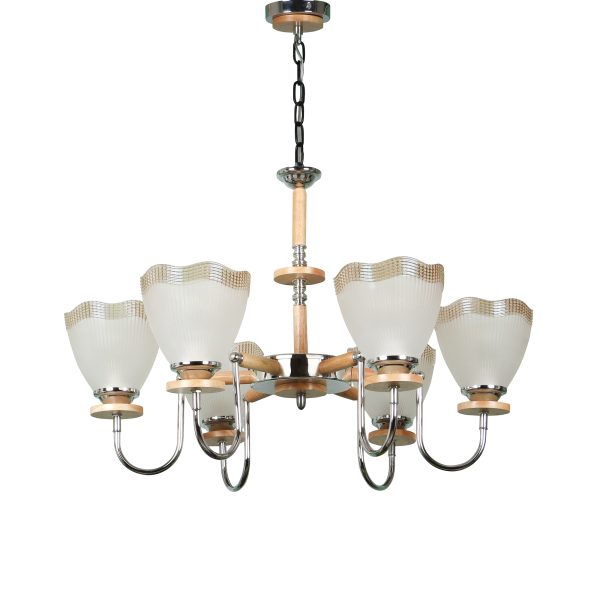 LEARC Designer Lighting Contemporary Glass Metal Wood Chandelier CH403-6