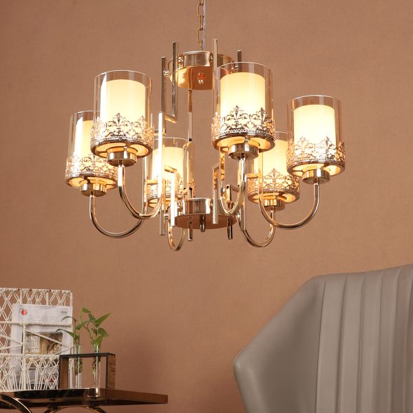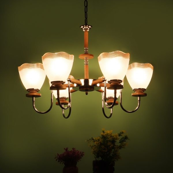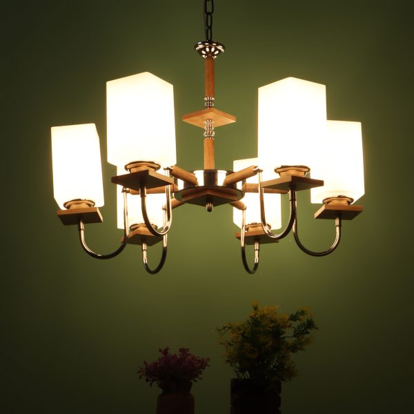 LEARC Designer Lighting Contemporary Glass Metal Wood Chandelier CH429-8