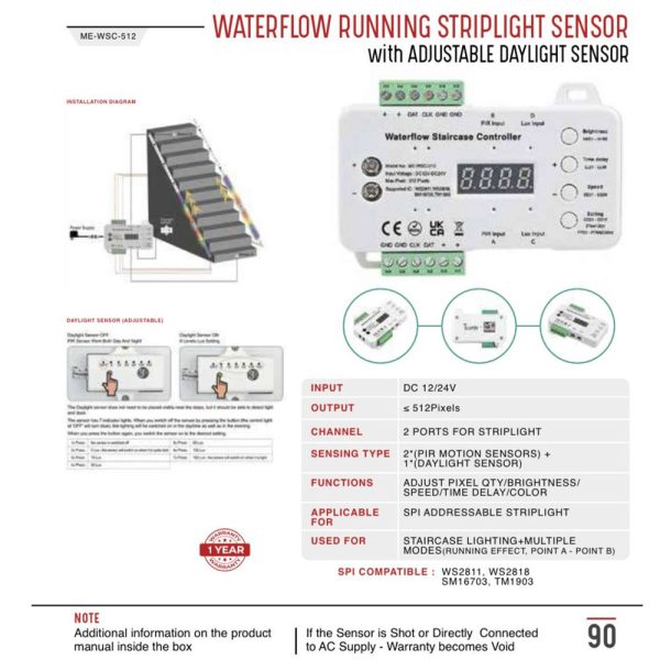 WATERFLOW RUNNING STRIPLIGHT SENSOR with ADJUSTABLE DAYLIGHT SENSOR MEM282
