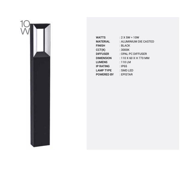 SUPERSCAPE premium aluminium black finish 2×5 watt 13.5 inch IP65 bollard 3K PR6353