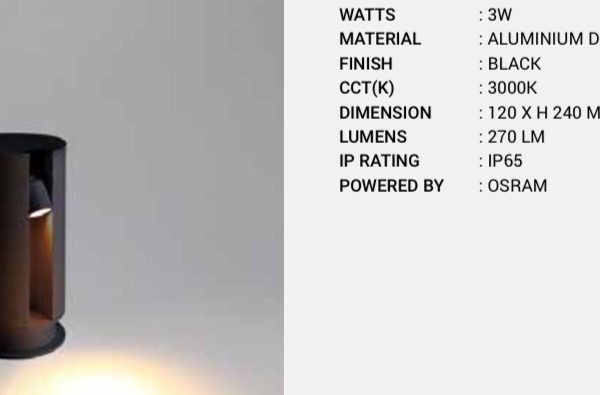 SUPERSCAPE premium aluminium black finish 3 watt 9.5 inch IP65 path light 3K PR6355