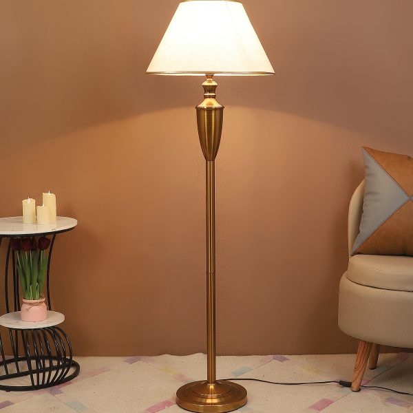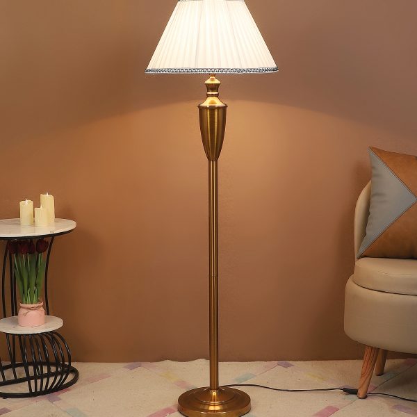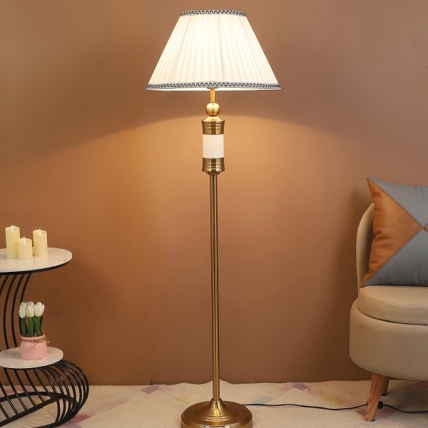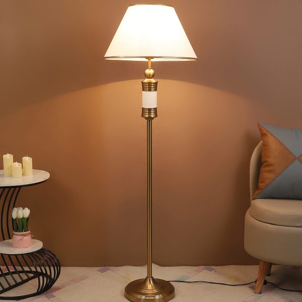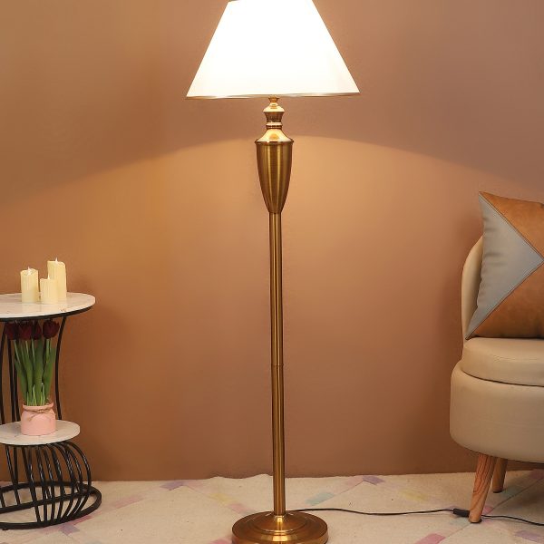 LEARC gold bronze finish floor lamp with white shade having golden border FL5021-C