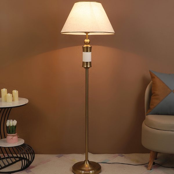 LEARC gold bronze and white finish floor lamp with cream shade FL5017-A