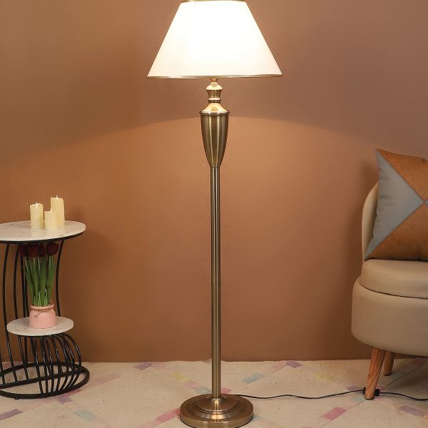 LEARC antique brass finish floor lamp with white shade having golden border FL5020-C
