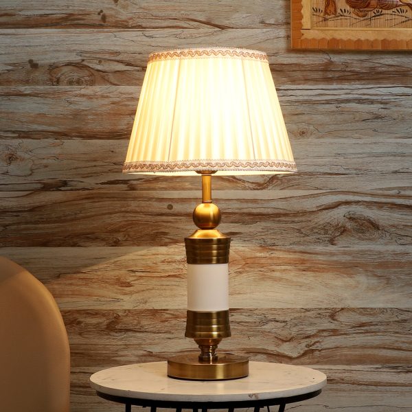 LEARC gold bronze and white finish table lamp with light gold shade having golden border TL5017-D