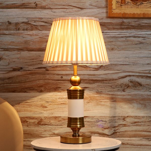 LEARC gold bronze and white finish table lamp with white shade having golden border TL5017-C