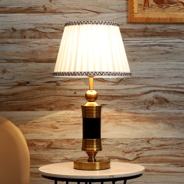 LEARC gold bronze and black finish table lamp with white shade having golden border TL5018-C