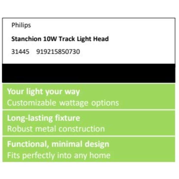 PHILIPS 31445 STANCHION TRACK LIGHT 10W HEAD BLACK WARM WHITE (YELLOW) 3K, PH1186-WW