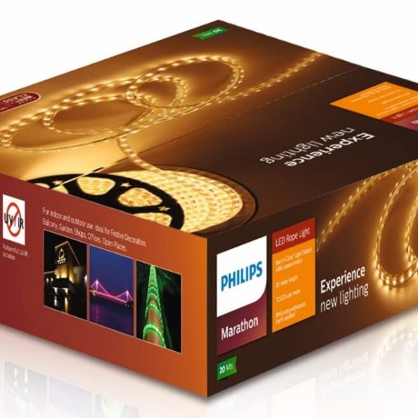 PHILIPS MINI MARATHON 72 LED PER METER ROPE LIGHT 6 WATT PER METER WATERPROOF IP65 20 METER WARM WHITE (YELLOW) PH1453