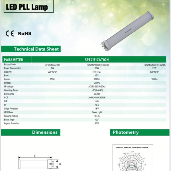 RENESOLA 9 WATT LED PL-L LAMP COOL DAY LIGHT WHITE 6500K RN1051