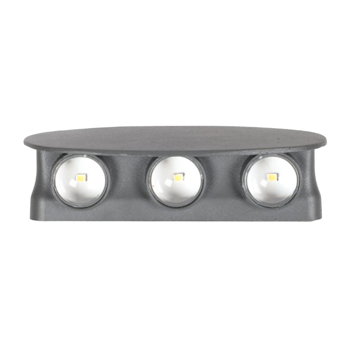 7 watt aluminium six lens up down outdoor LED wall light grey 3K.