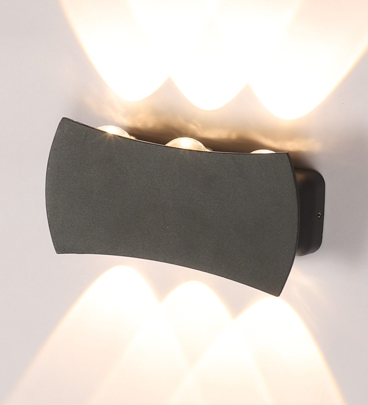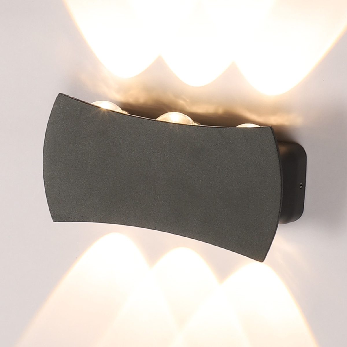 7 watt aluminium six lens up down outdoor LED wall light grey 3K.