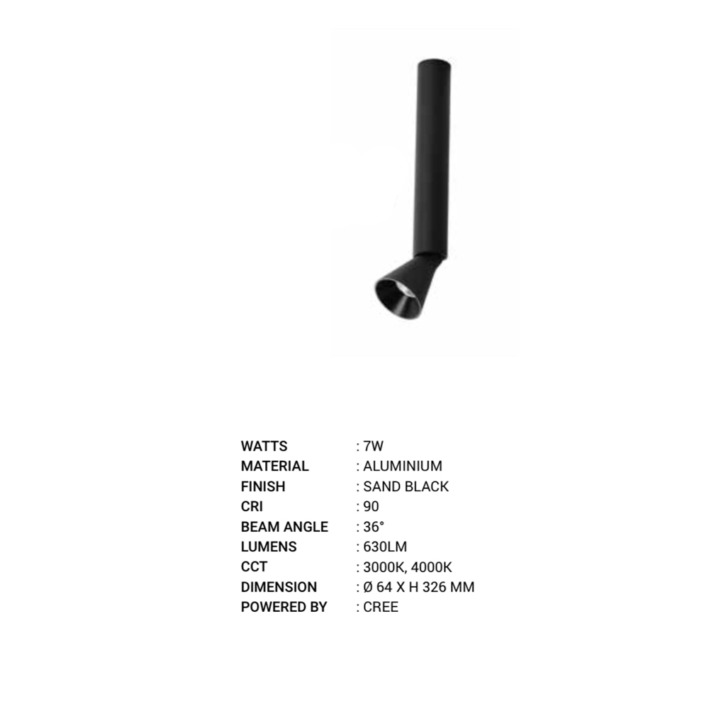 LEARC 1 head 7 watt black ceiling mounted adjustible focus light 8 inch height PR6303