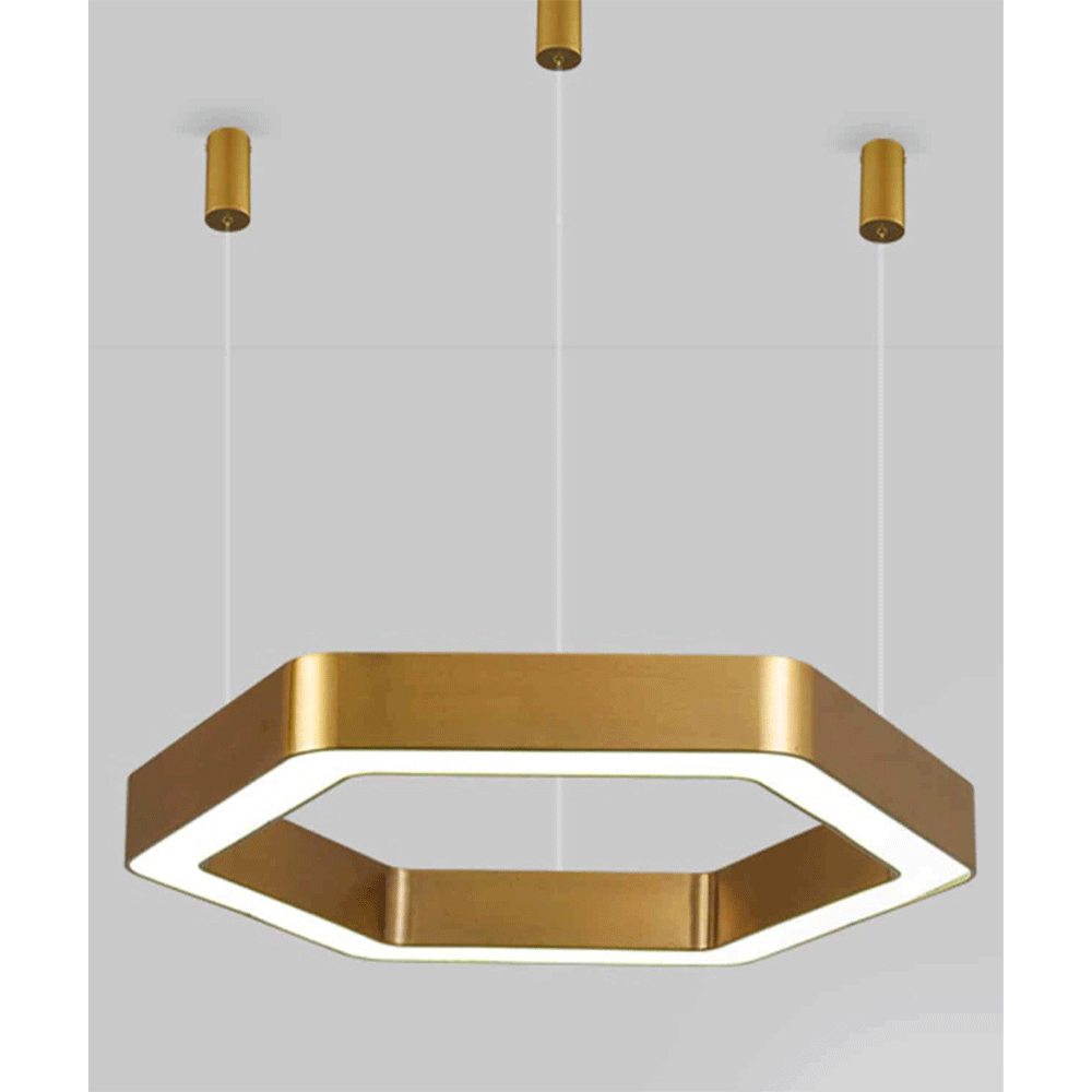 LEARC 12 inch 24 watt gold finish hexagonal LED Hanging Light with top quality LED and driver 3K, Can be custimized to any size, colour finish, mettallic plating, colour of light output as per requirement.