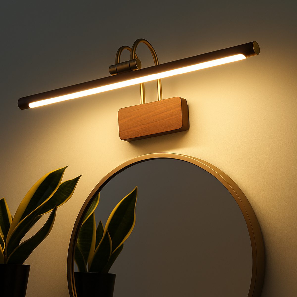 LEARC 12 watt 20 inch wood finish colour changing 3 in 1 LED ajustible picture light. Colour changes fom white to neutral white to yellow by switching on and off.