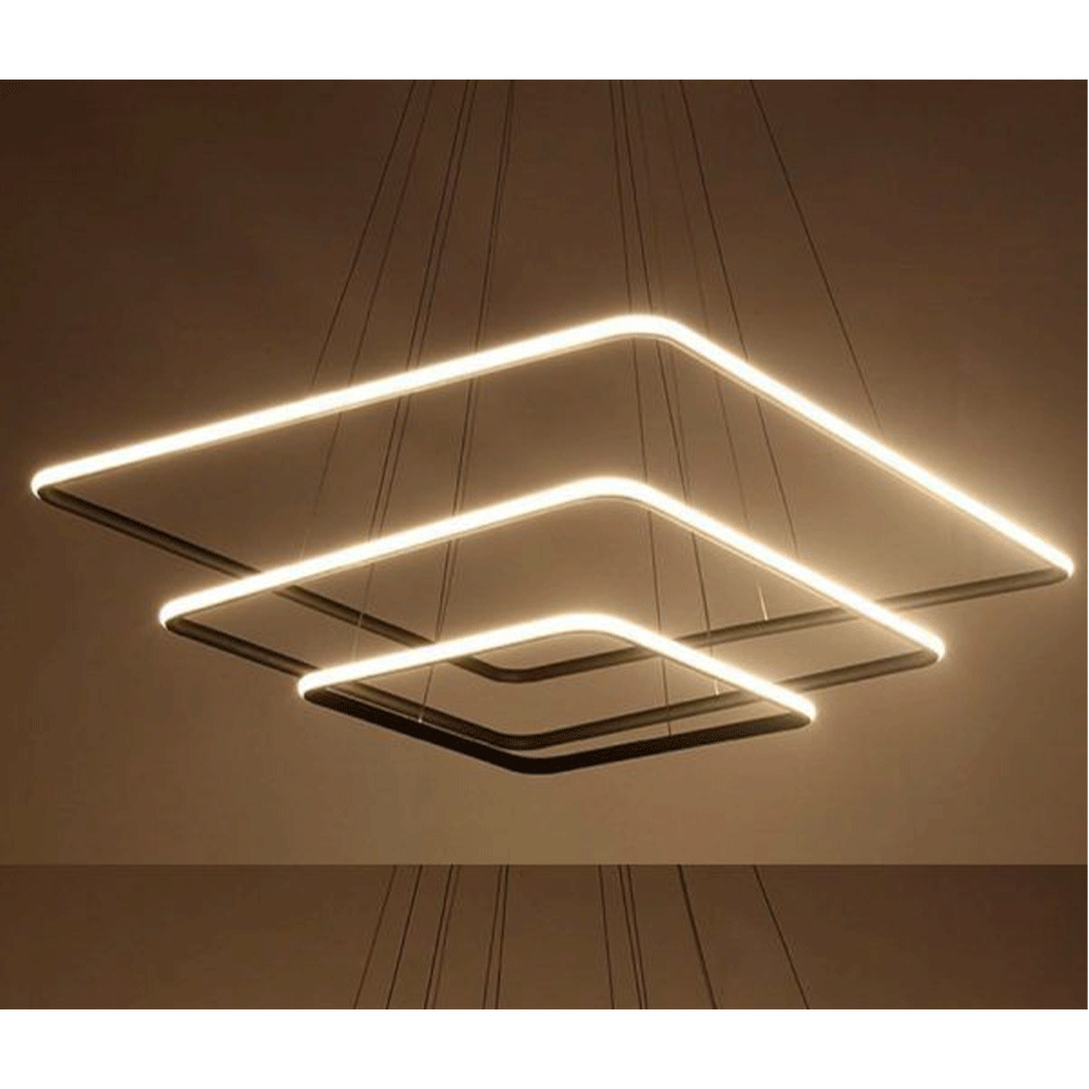 LEARC 3 ring 24-30-36 inch customizable, 32+40+48 Watt black finish LED Hanging Light with top quality LED and driver 3K, Can be custimized to any size, colour finish, mettallic plating, colour of light output as per requirement.