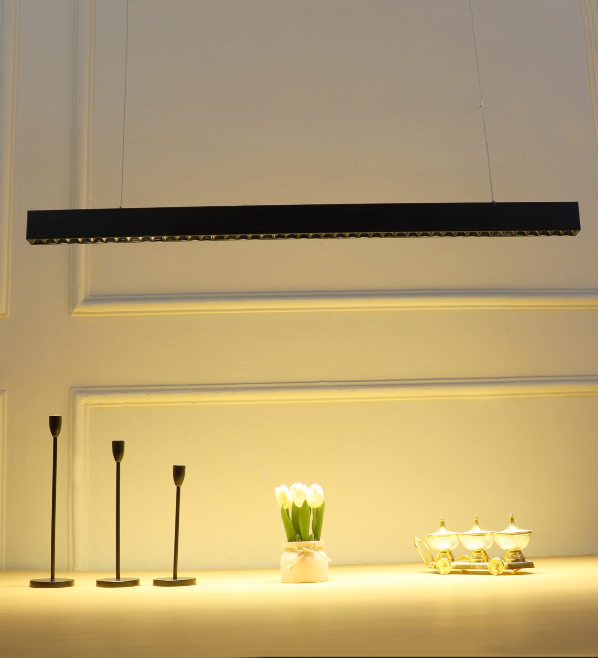 LEARC 36 WATT 4 FEET LED PROFILE HANGING LIGHT 3382 BLACK 3 REFLECTOR 2 DIFFUSER 4 FEET GS1377