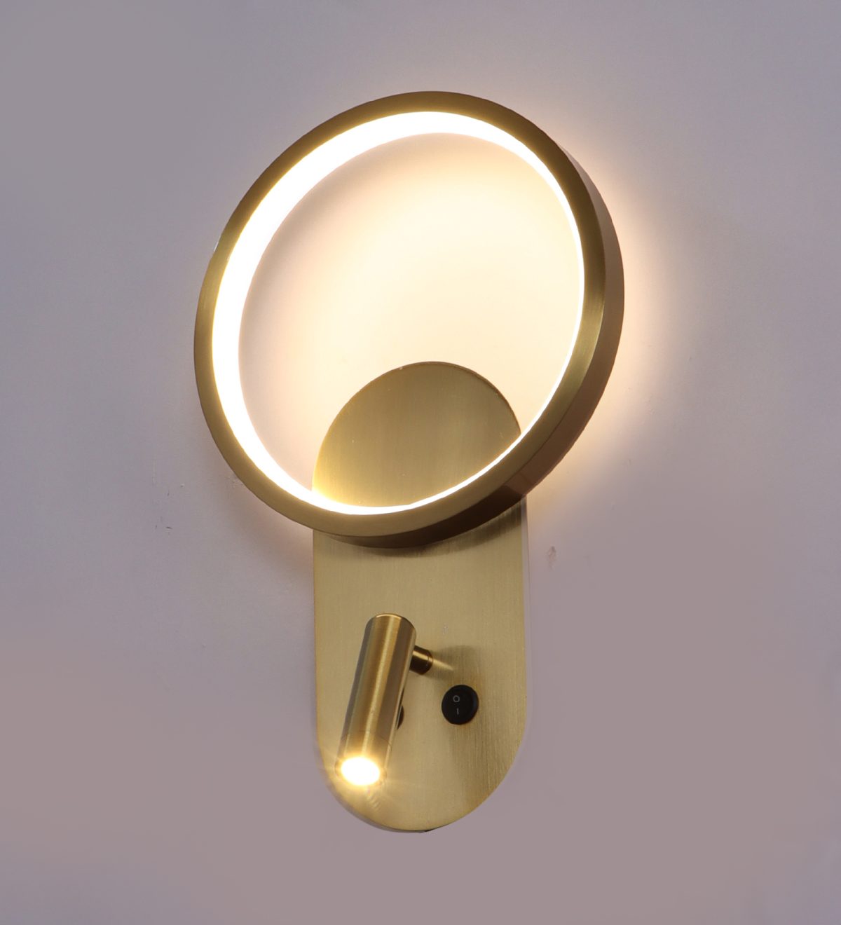 LEARC 6 + 3 watt antique gold finish LED bed side light with rotational adjustment.