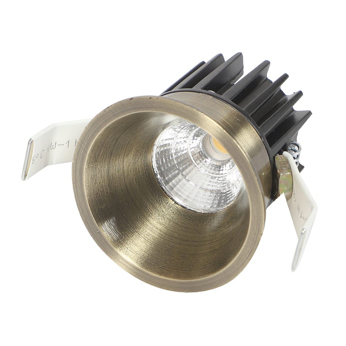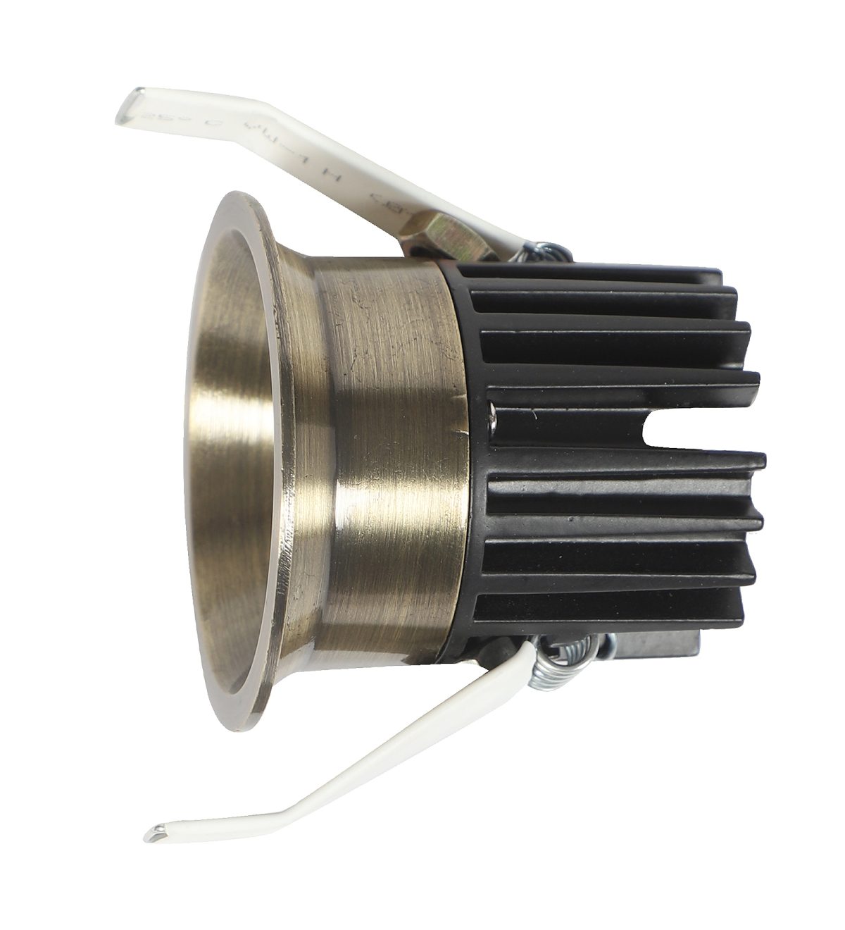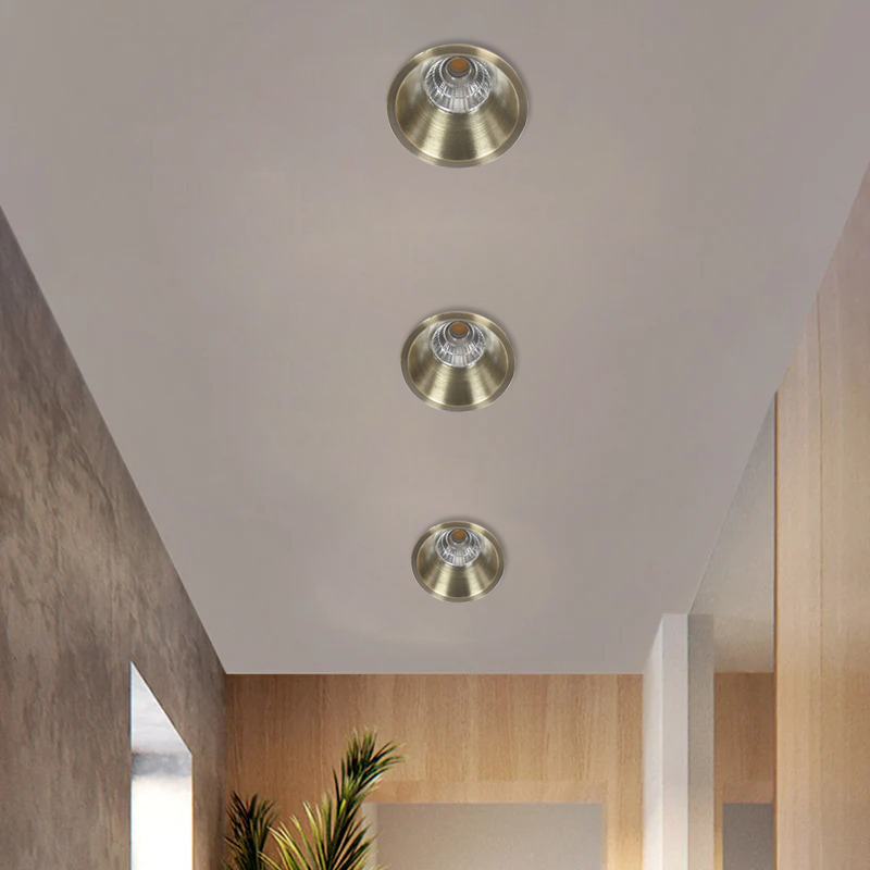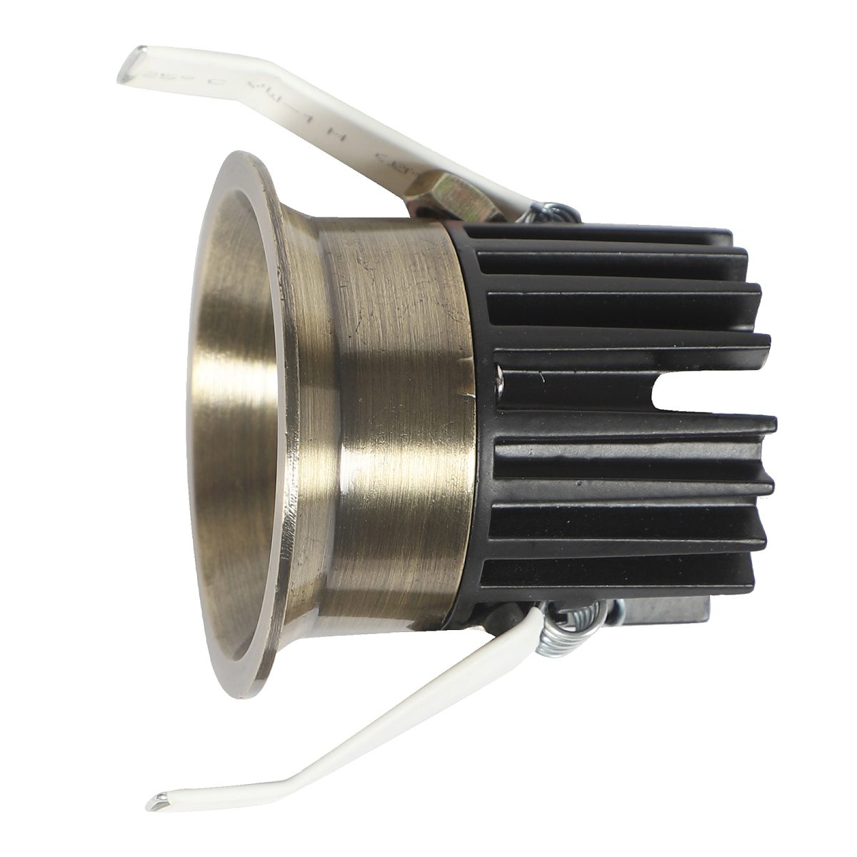 Antique brass finish, aluminium die cast round 6W LED COB concealed ceiling light with top quality LED and driver. Application includes both indoor and outdoor ceilings. Available in 3000K, 4000K and 6000K ie warm white, nuetral white and white light output.