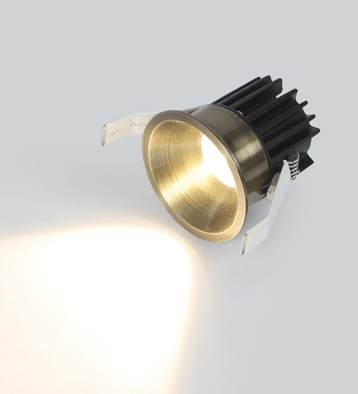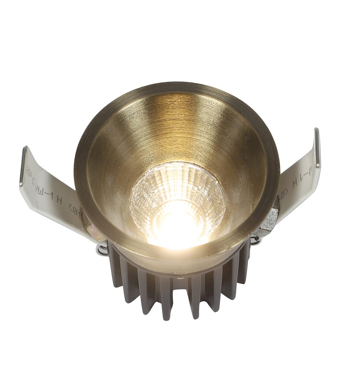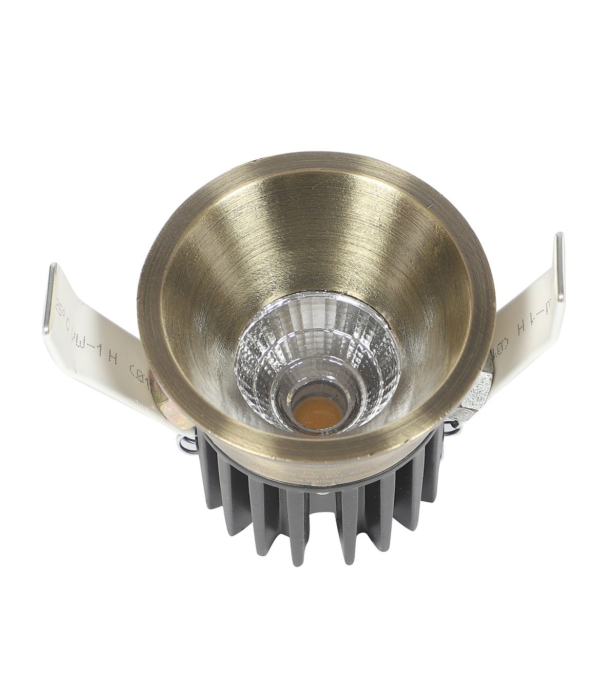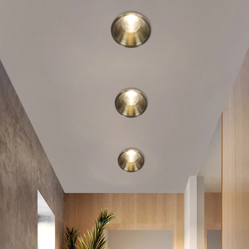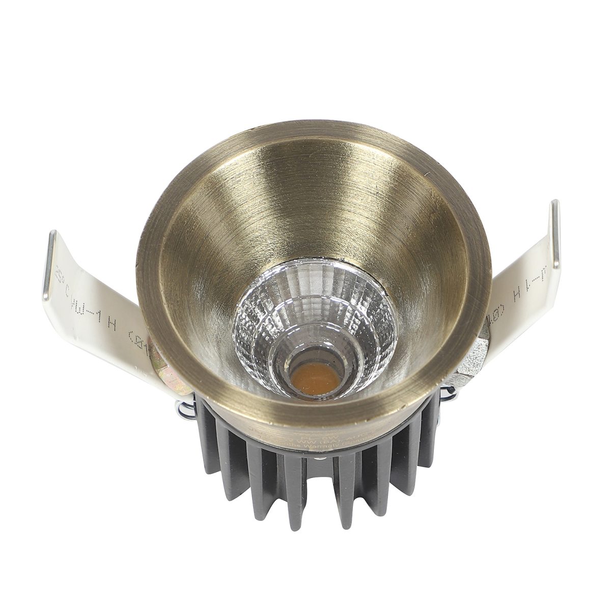 Antique brass finish, aluminium die cast round 6W LED COB concealed ceiling light with top quality LED and driver. Application includes both indoor and outdoor ceilings. Available in 3000K, 4000K and 6000K ie warm white, nuetral white and white light output.