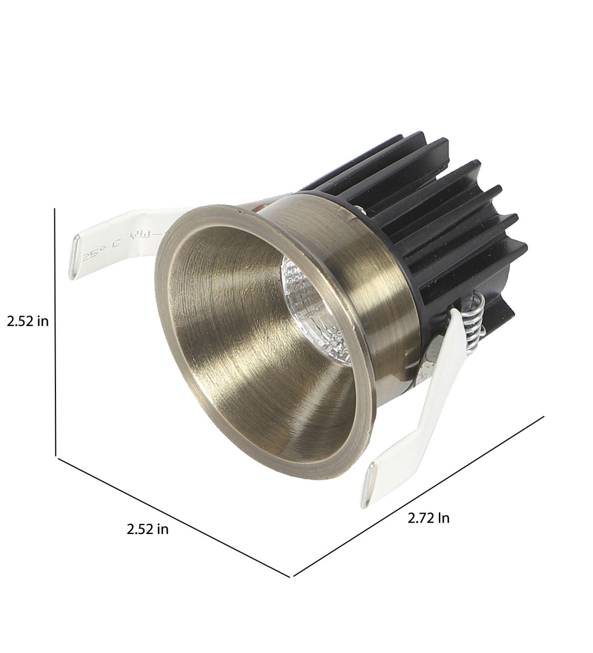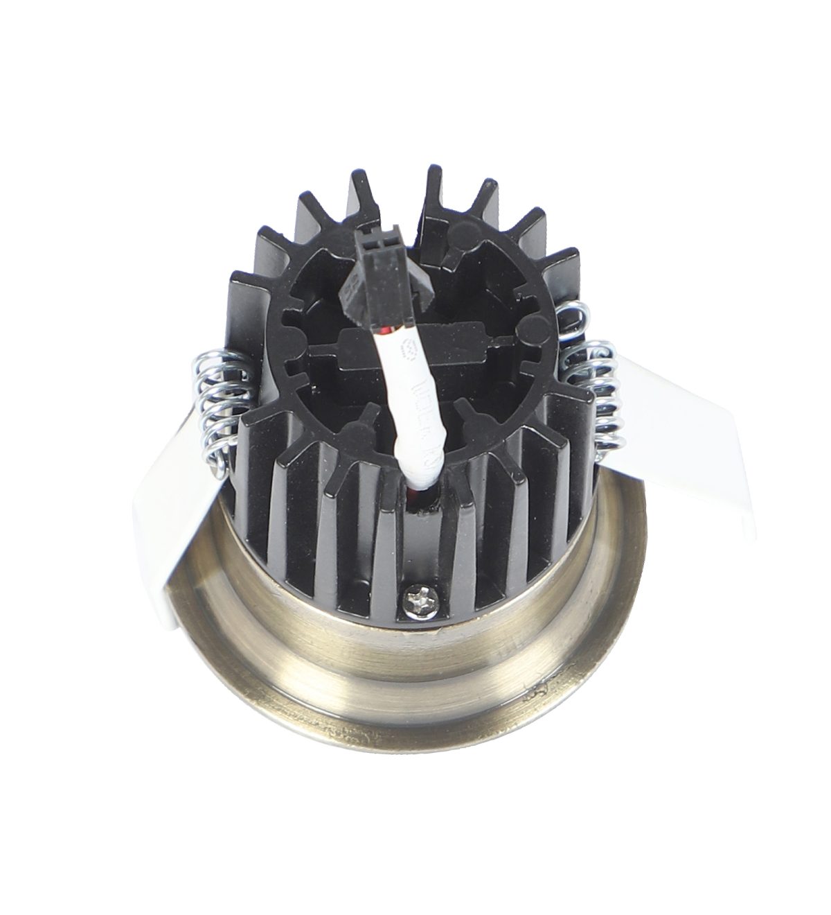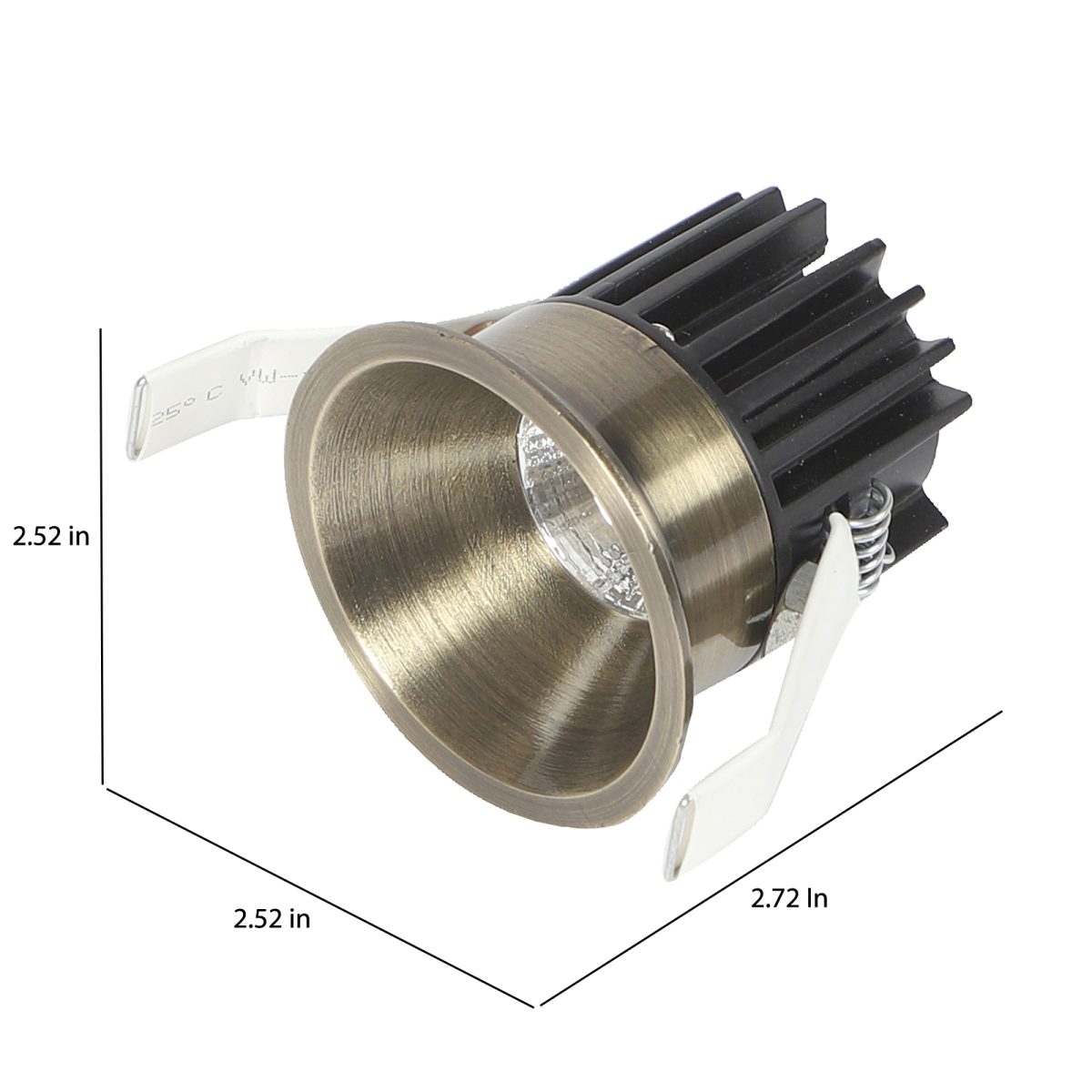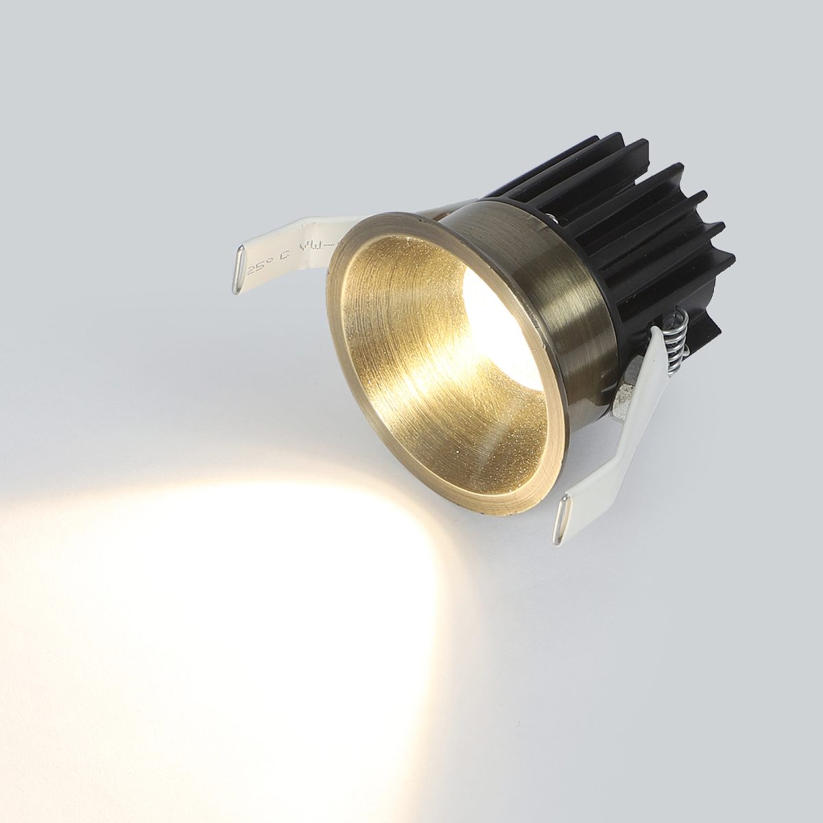 Antique brass finish, aluminium die cast round 6W LED COB concealed ceiling light with top quality LED and driver. Application includes both indoor and outdoor ceilings. Available in 3000K, 4000K and 6000K ie warm white, nuetral white and white light output.