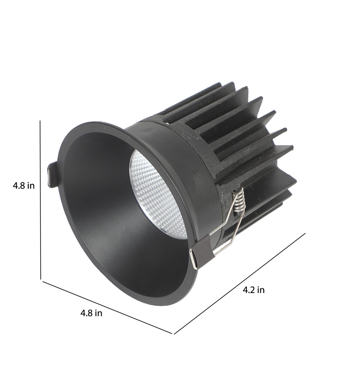 Premium powder coated heavy duty black finish, aluminium die cast LED COB round 24W LED concealed ceiling light with Bridgelux LED and Phillips or equivalent LED Driver. Application includes both indoor and outdoor ceilings. Available in 3000K, 4000K and 6000K ie warm white, nuetral white and white light output. Also avialable in 5000K and colour changing 3 in 1.