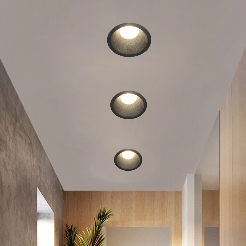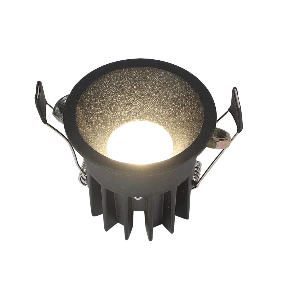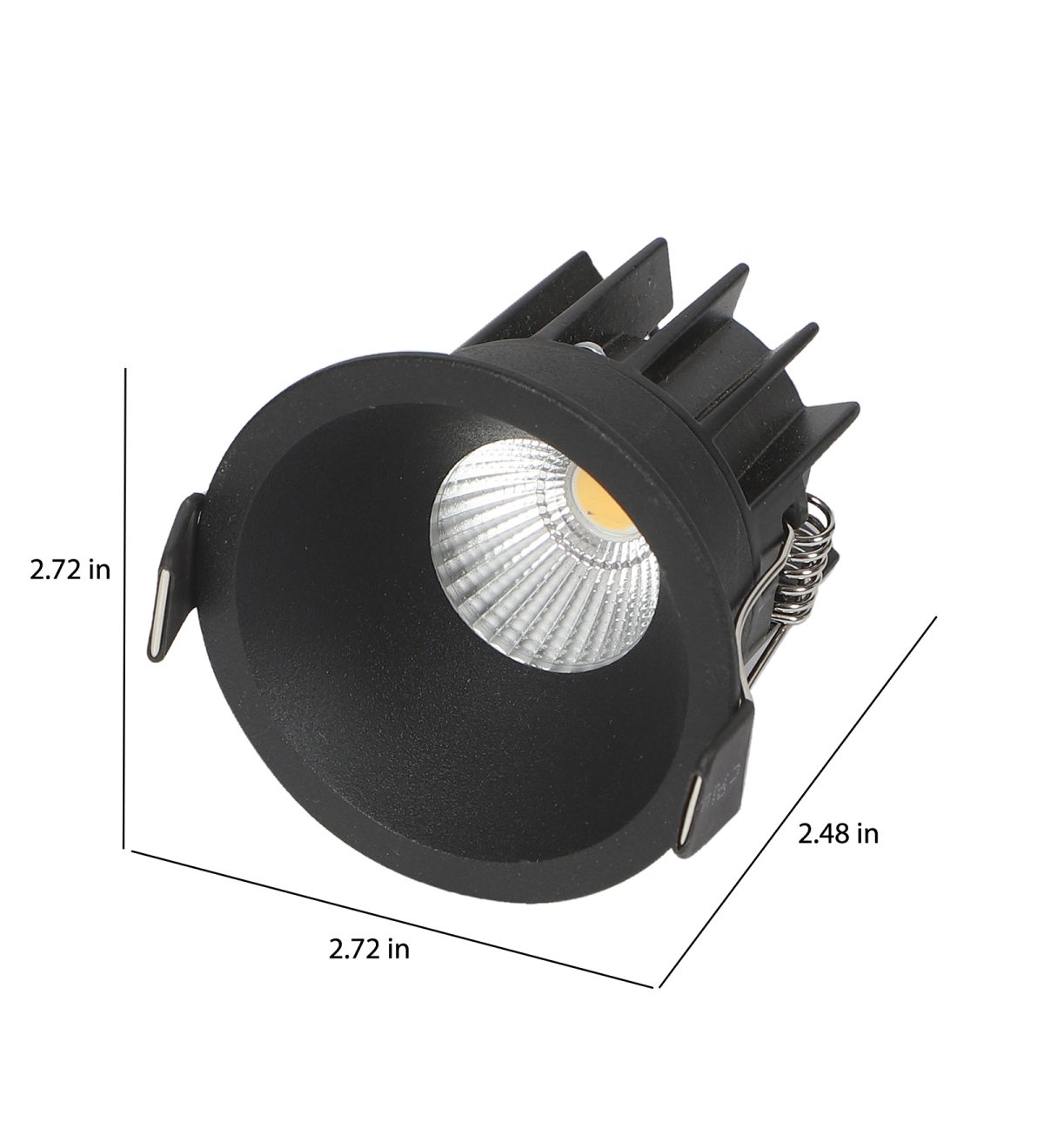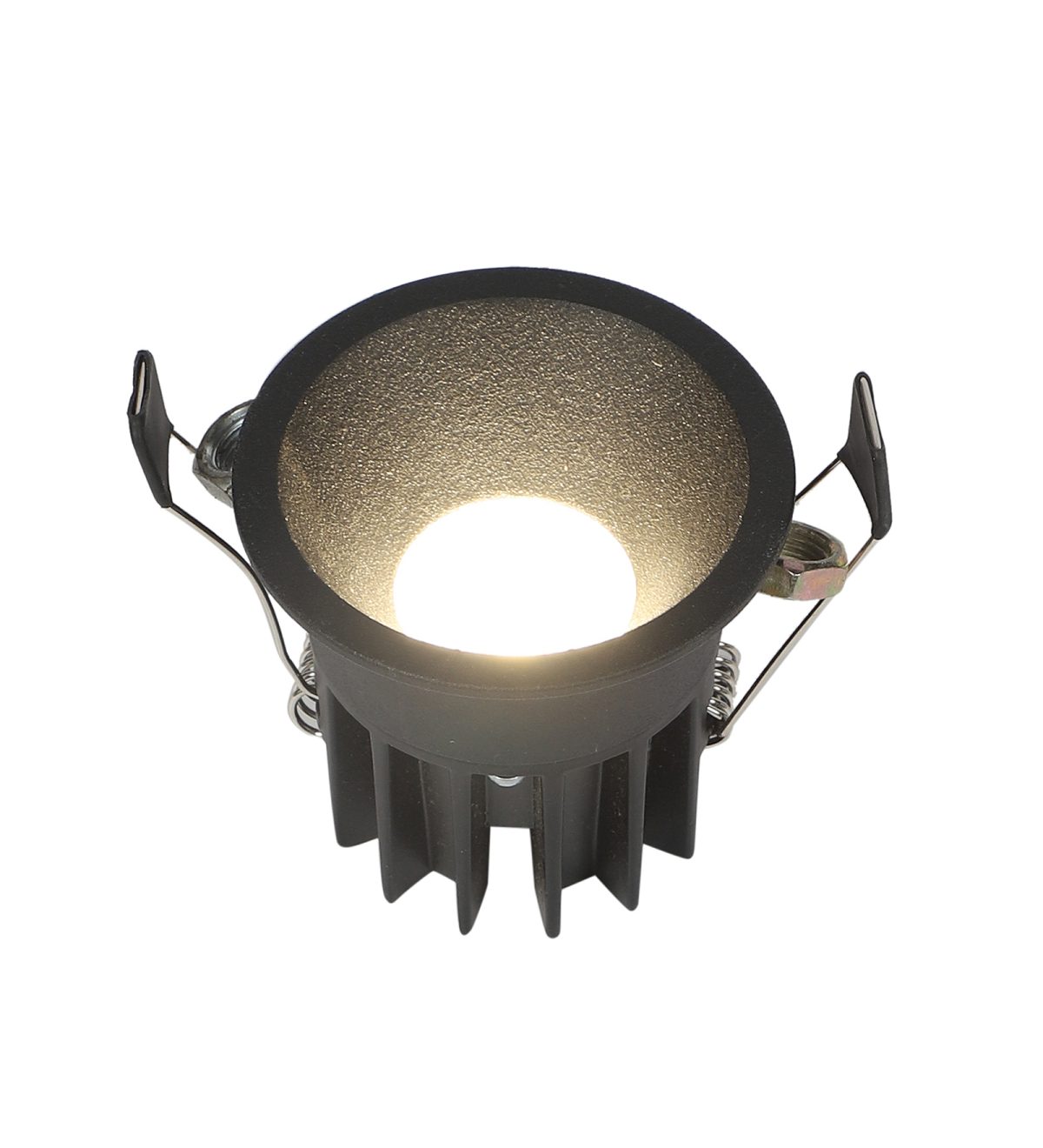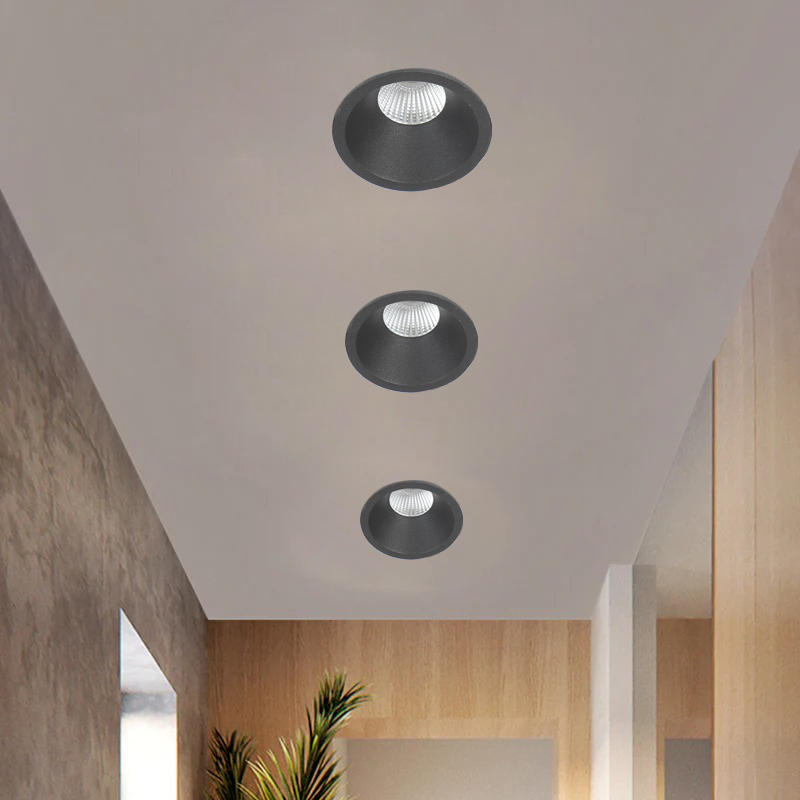 Premium powder coated heavy duty black finish, aluminium die cast LED COB round 7W LED concealed ceiling light with Bridgelux LED and Phillips or equivalent LED Driver. Application includes both indoor and outdoor ceilings. Available in 3000K, 4000K and 6000K ie warm white, nuetral white and white light output. Also avialable in 5000K and colour changing 3 in 1.