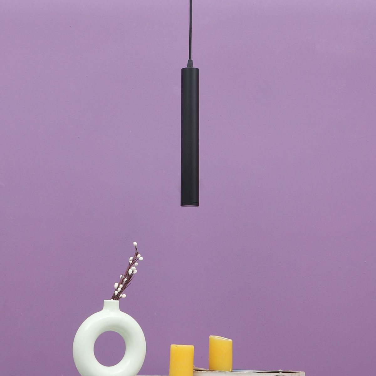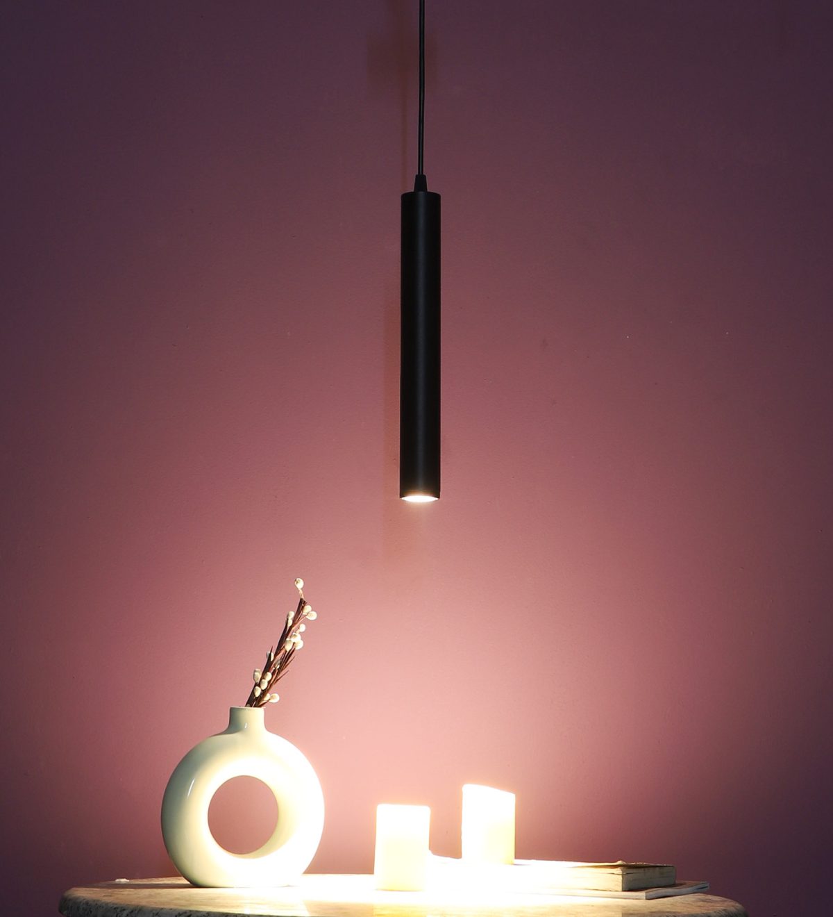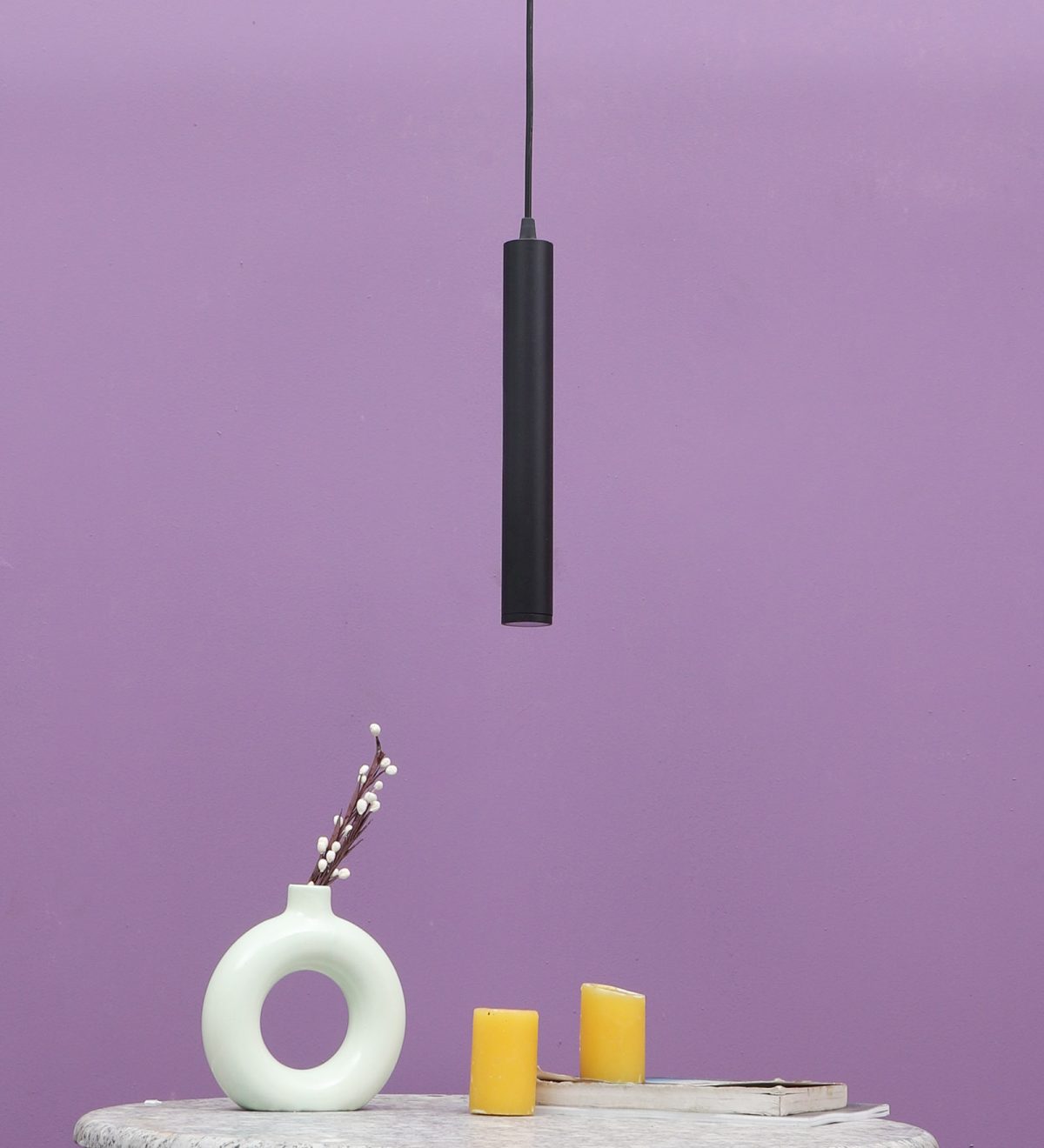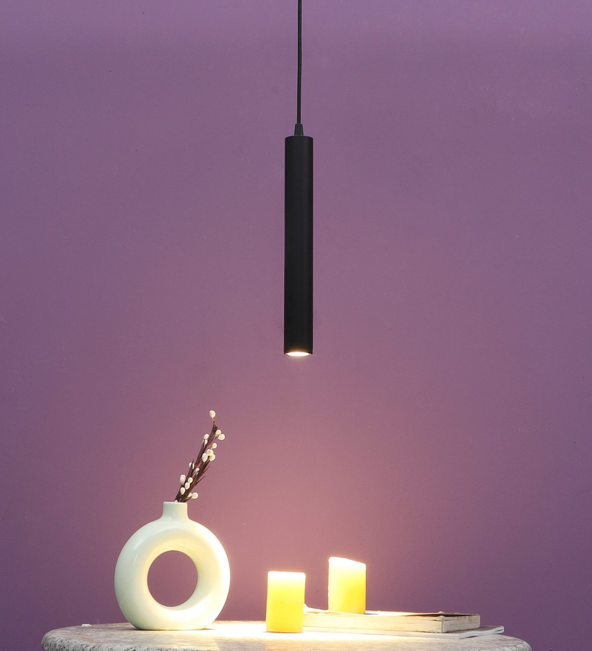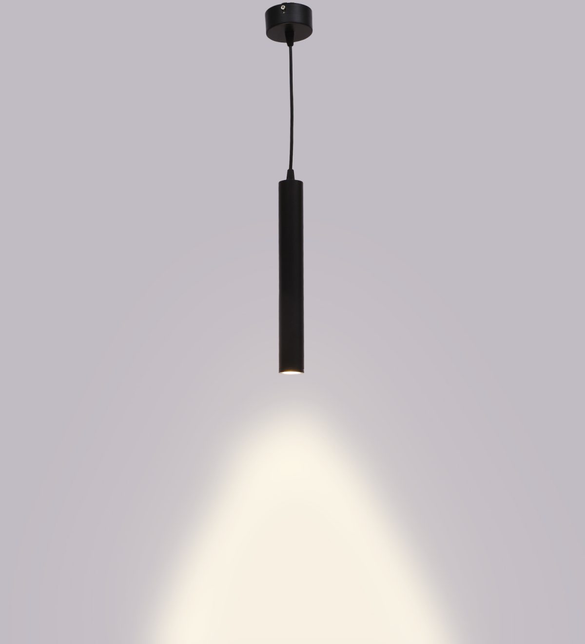 Black finish, sleek, modern, 12 watt LED hanging light having top branded LED and driver warm white (yellow) light output The suspension can be adjusted at time of installation to the desired height. Can be made available in a cluster of multiple quantities with round, square or rectangular base as per requirement . Application includes both residential and commercial premises wherever it matches with your interiors. Can be customized as per requirement in terms of finish, wattage, height, diameter.
