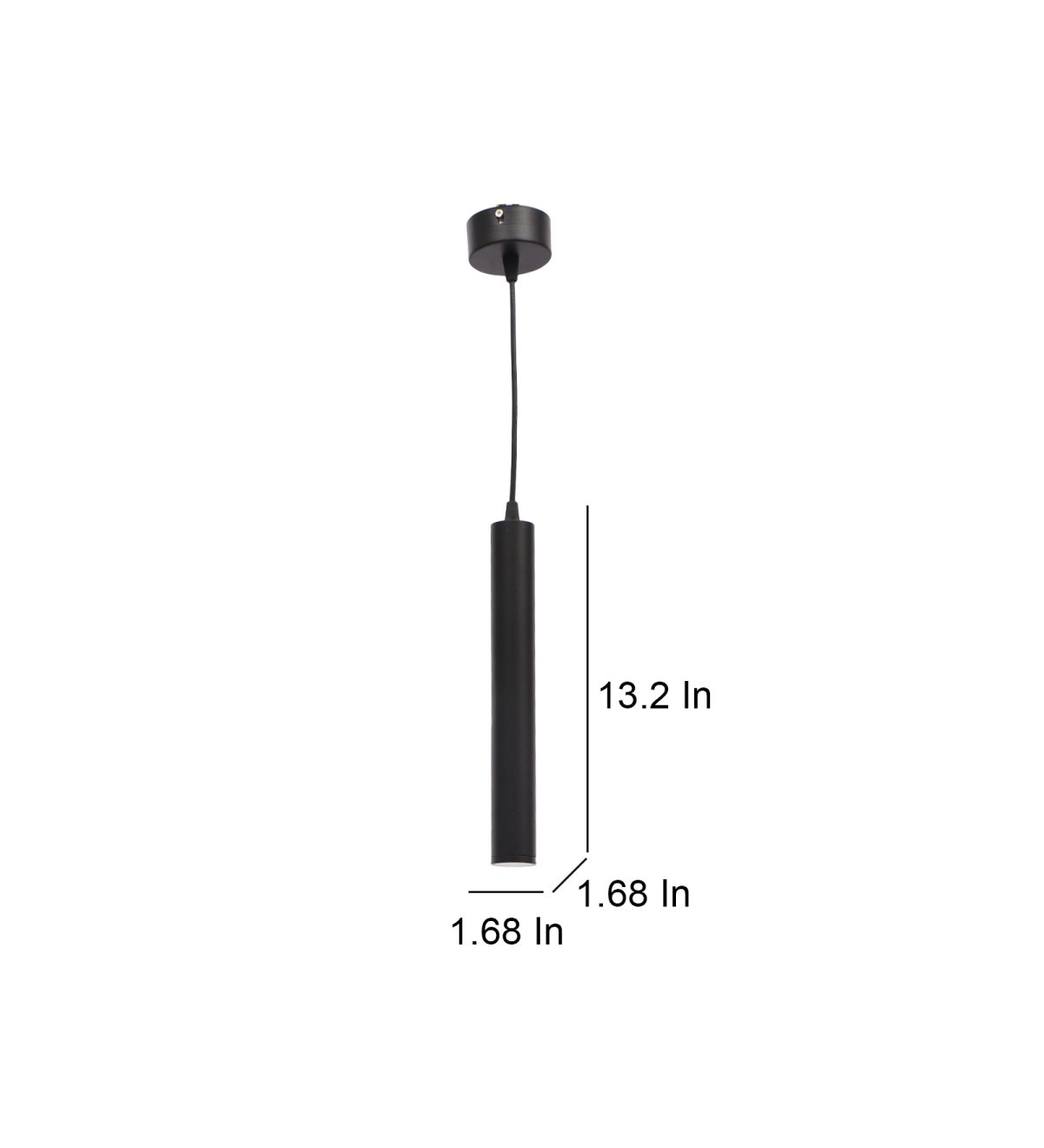 LEARC aluminium black finish 12 watt 1.68 inch diameter 18 inch height CREE LED Pipe hanging Light with Philips LED driver 3k HL7070-M
