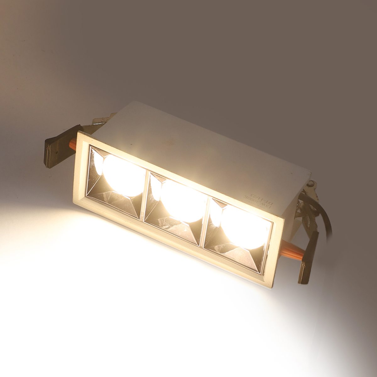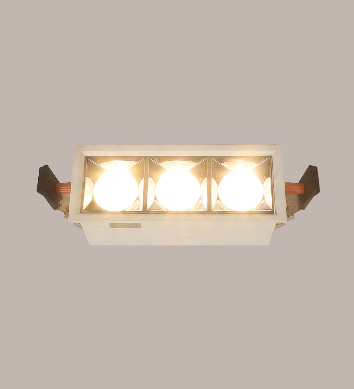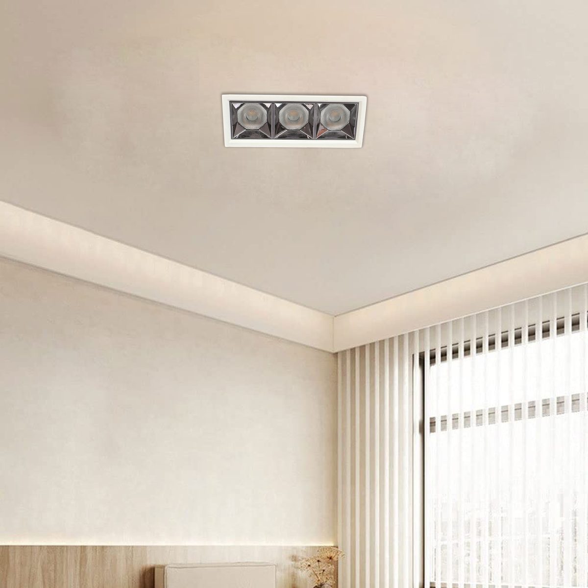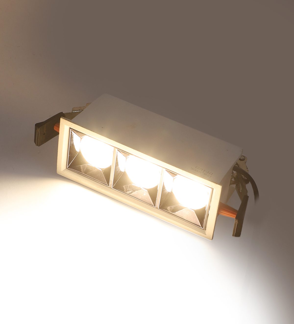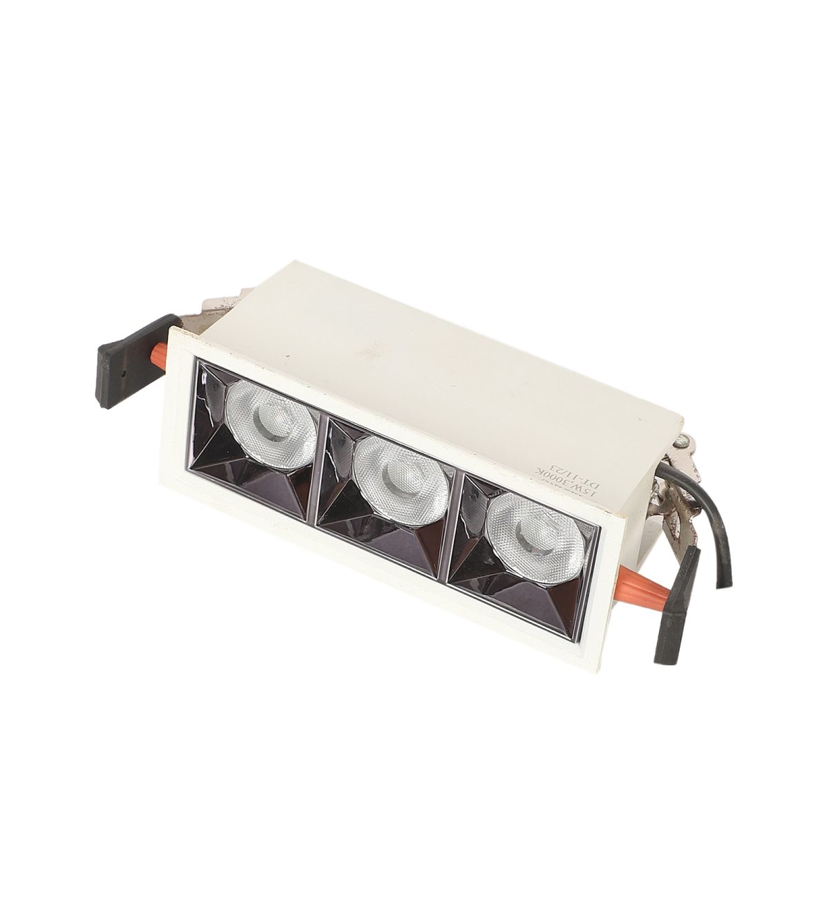Aluminium die cast powder coated wite finish 3 X 5 watt anti LED Linear down light with Bridgelux COB and Fulham or equivalent LED driver. Used in ultra modern spaces.