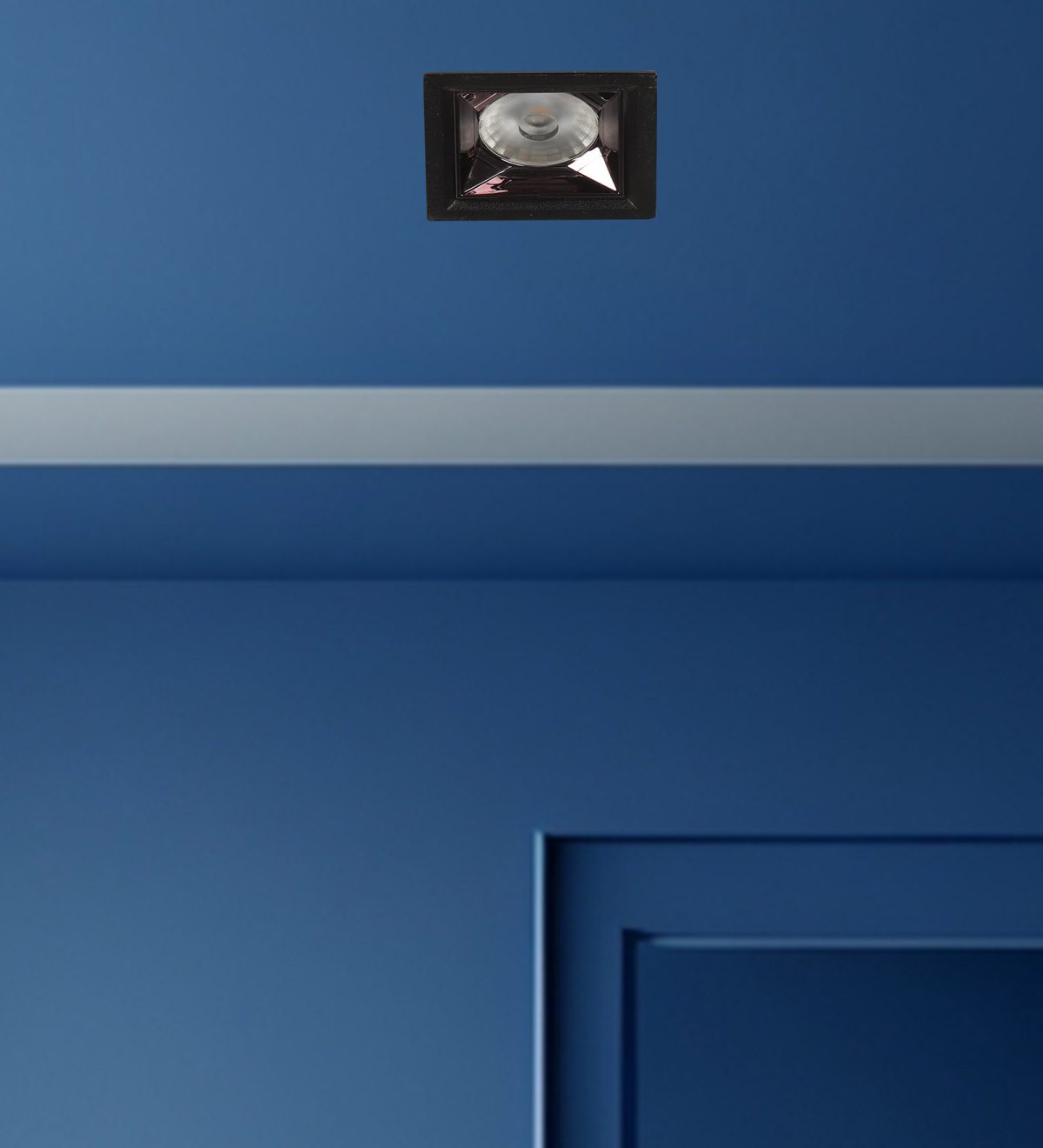 Aluminium die cast powder coated black finish 5 watt anti LED Linear down light with Bridgelux COB and Fulham or equivalent LED driver. Used in ultra modern spaces.