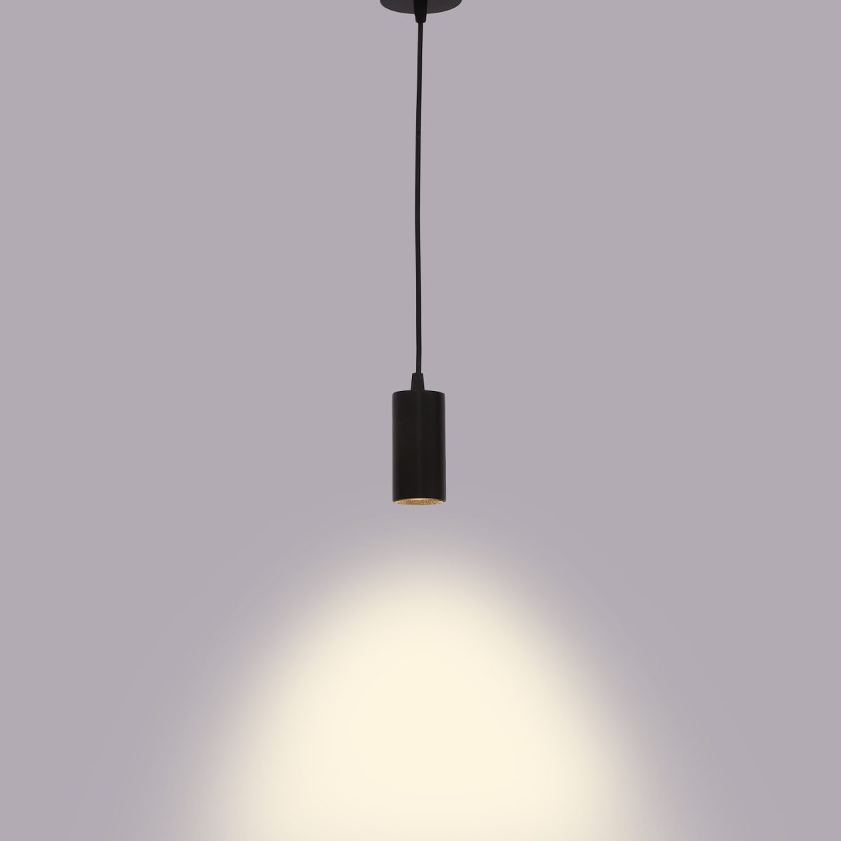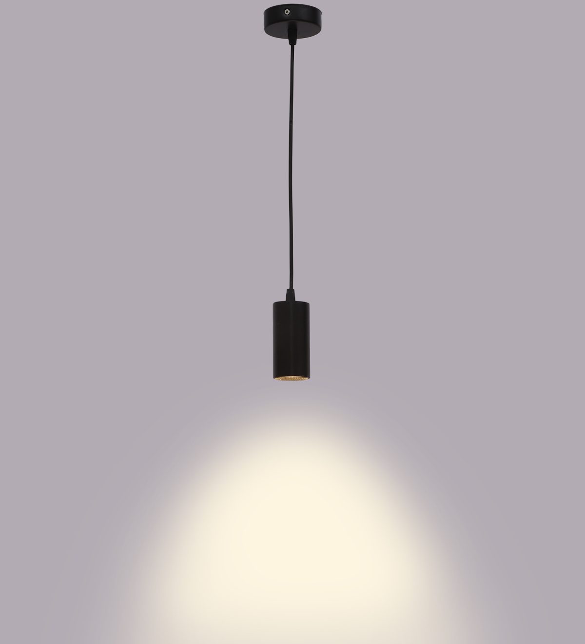 Black modern, round, 6 watt single LED hanging light having high quality LED and driver. The suspension can be adjusted at time of installation to the desired height. Application includes both residential and commercial premises wherever it matches with your interiors. Can be customised as per requirement in terms of body colour, colour of light output and wattage. Can be made into a cluster of multiple quantities as per requirement.