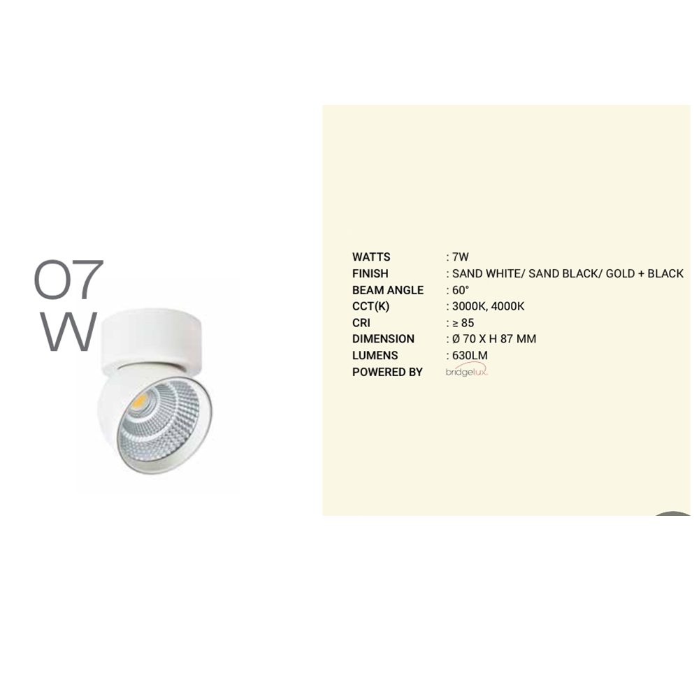 LEARC aluminium black finish 7 watt all angle adjustible surface spot light.