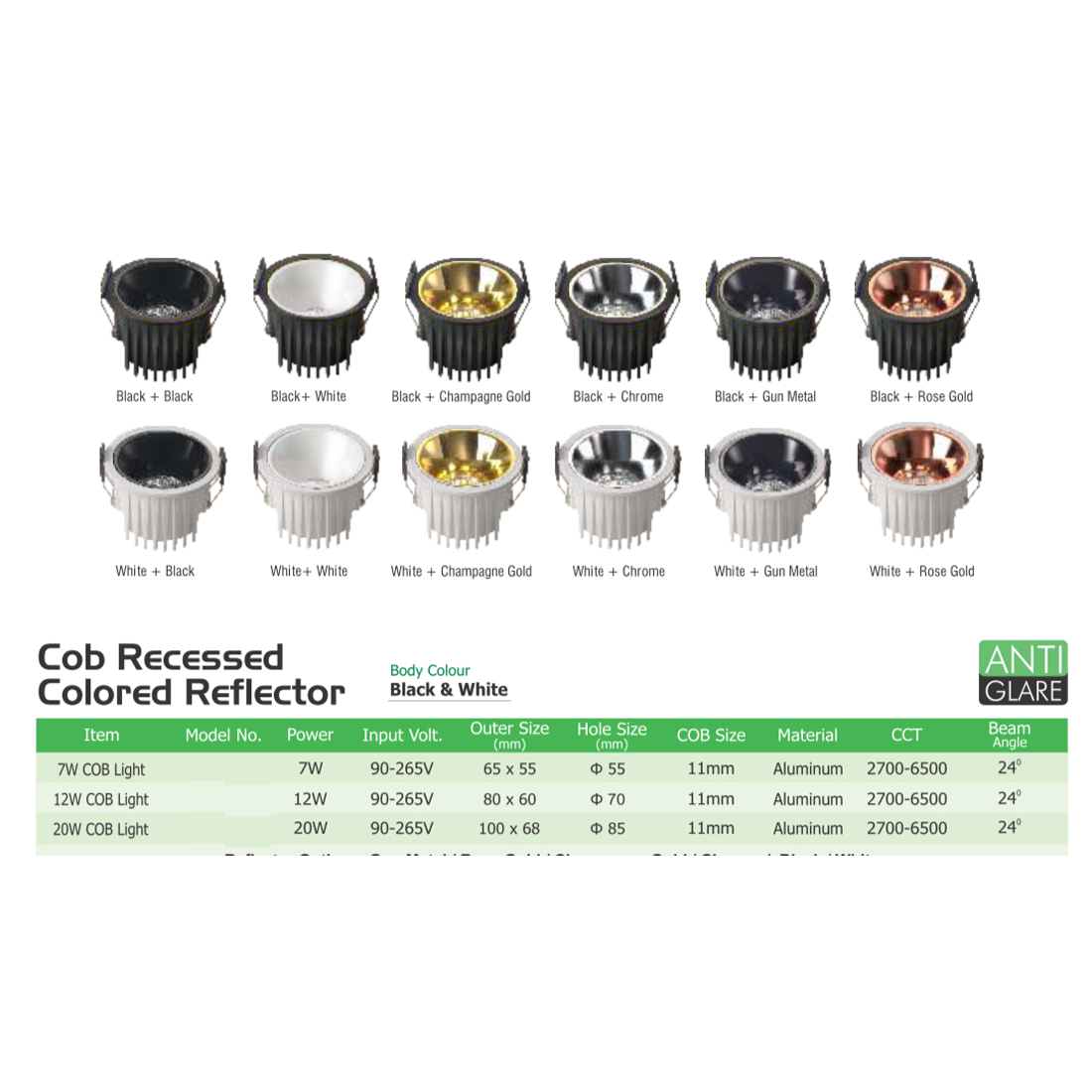 LEARC aluminium black finish chrome reflector anti glare 7 watt LED down light GS1485