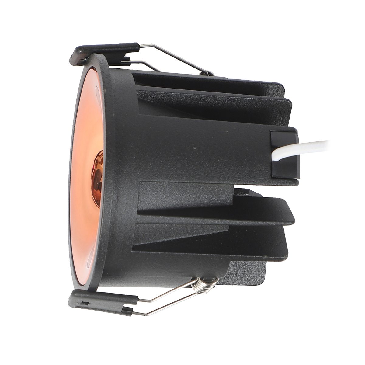 Powder coated black finish with rose gold reflector, aluminium die cast round 18W LED COB concealed ceiling light with top branded Bridgelux LED and Philips or equivalent LED driver. Application includes both indoor and outdoor ceilings. Available in 3000K, 4000K and 6000K ie warm white, nuetral white and white light output..