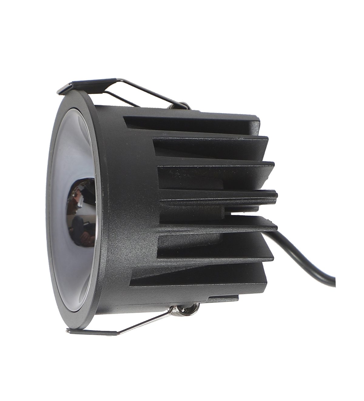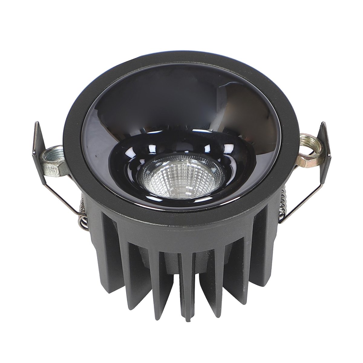 Powder coated black finish with glossy black reflector, aluminium die cast round 12W LED COB concealed ceiling light with top branded Bridgelux LED and Philips or equivalent LED driver. Application includes both indoor and outdoor ceilings. Available in 3000K, 4000K and 6000K ie warm white, nuetral white and white light output. Also available in 5000k colour temperature and colour changing 3 in 1 options.