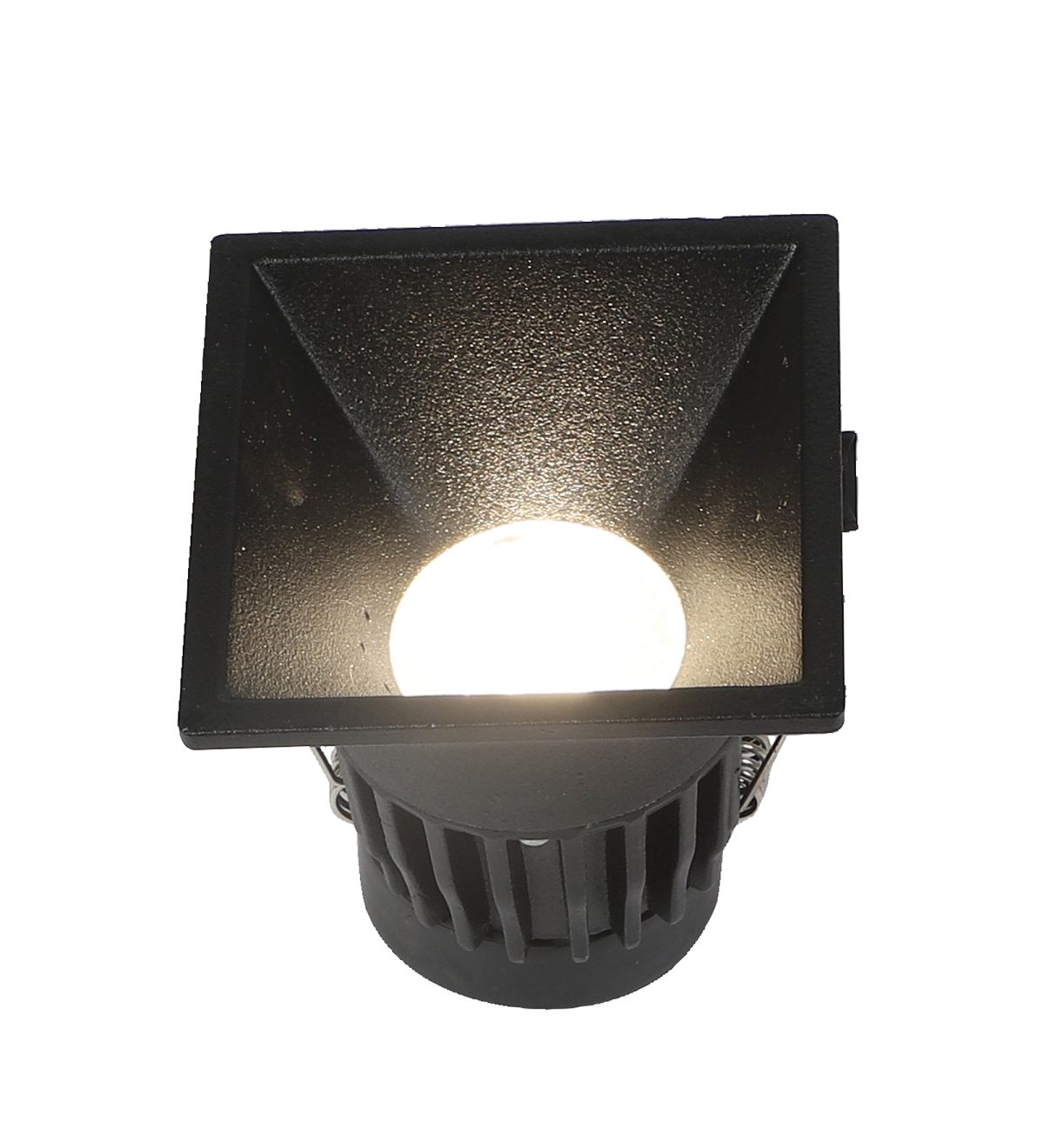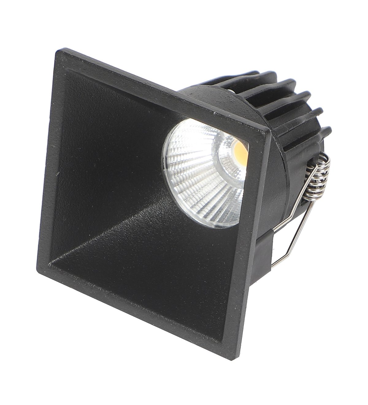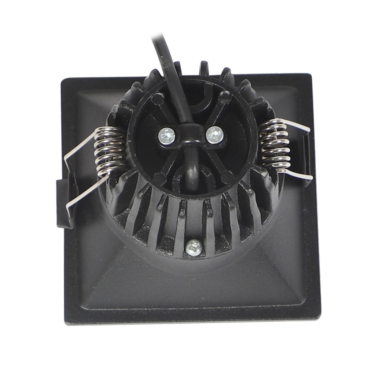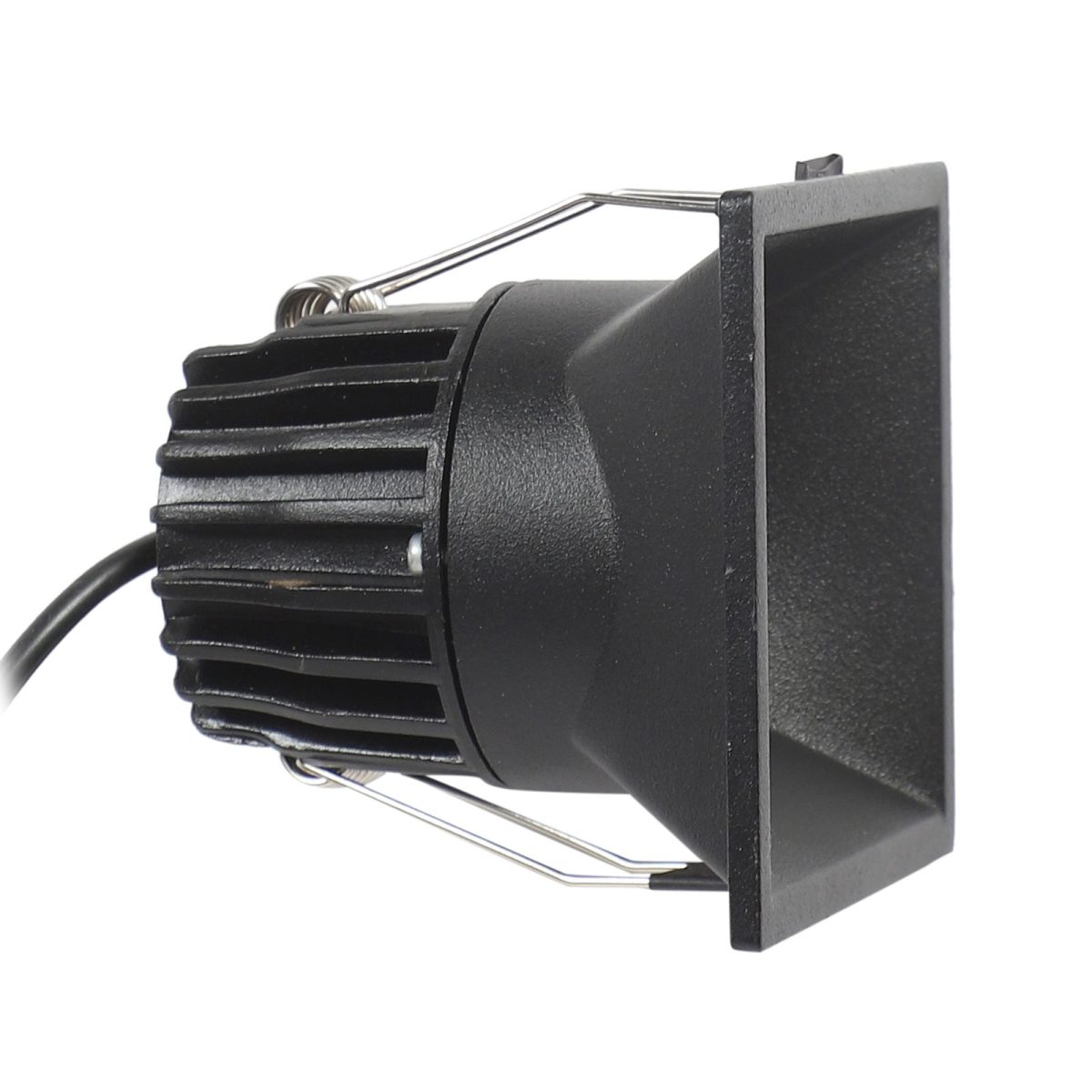 Powder coated black finish, aluminium die cast square 12W LED COB concealed ceiling light with top branded Bridgelux LED and Philips or equivalent LED driver. Application includes both indoor and outdoor ceilings. Available in 3000K, 4000K and 6000K ie warm white, nuetral white and white light output. 5000K colour temperature also available.