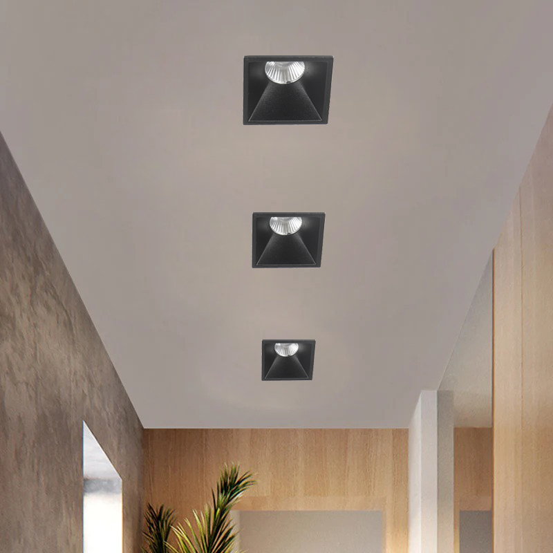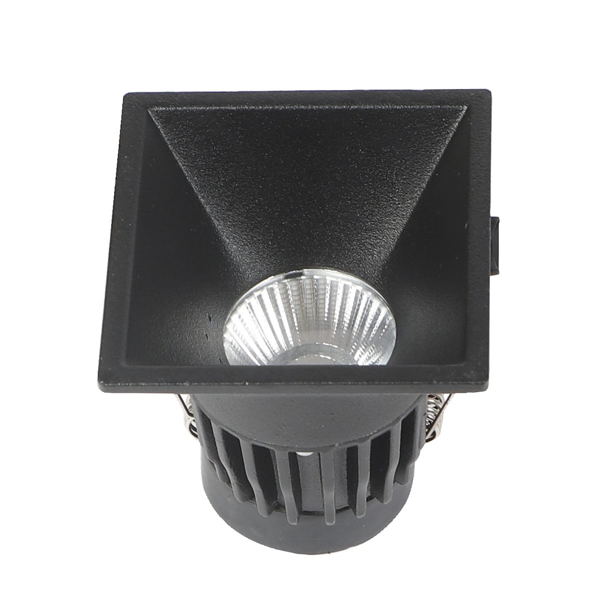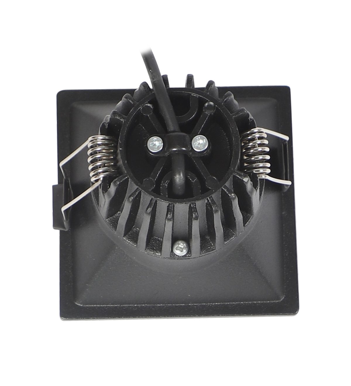 Powder coated black finish, aluminium die cast square 12W LED COB concealed ceiling light with top branded Bridgelux LED and Philips or equivalent LED driver. Application includes both indoor and outdoor ceilings. Available in 3000K, 4000K and 6000K ie warm white, nuetral white and white light output. 5000K colour temperature also available.