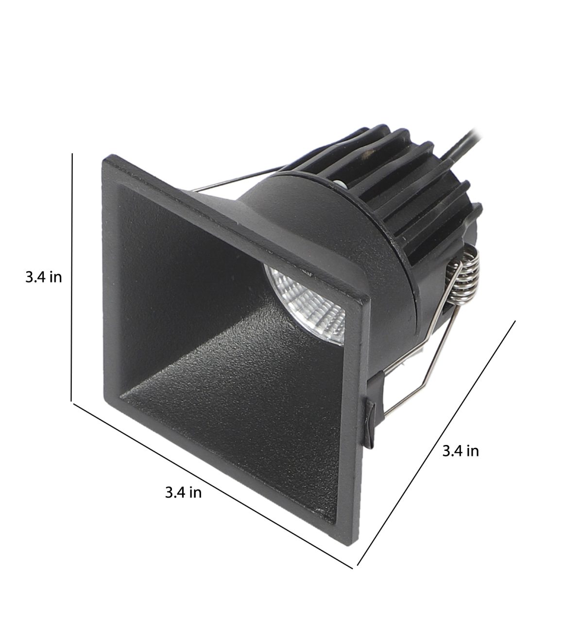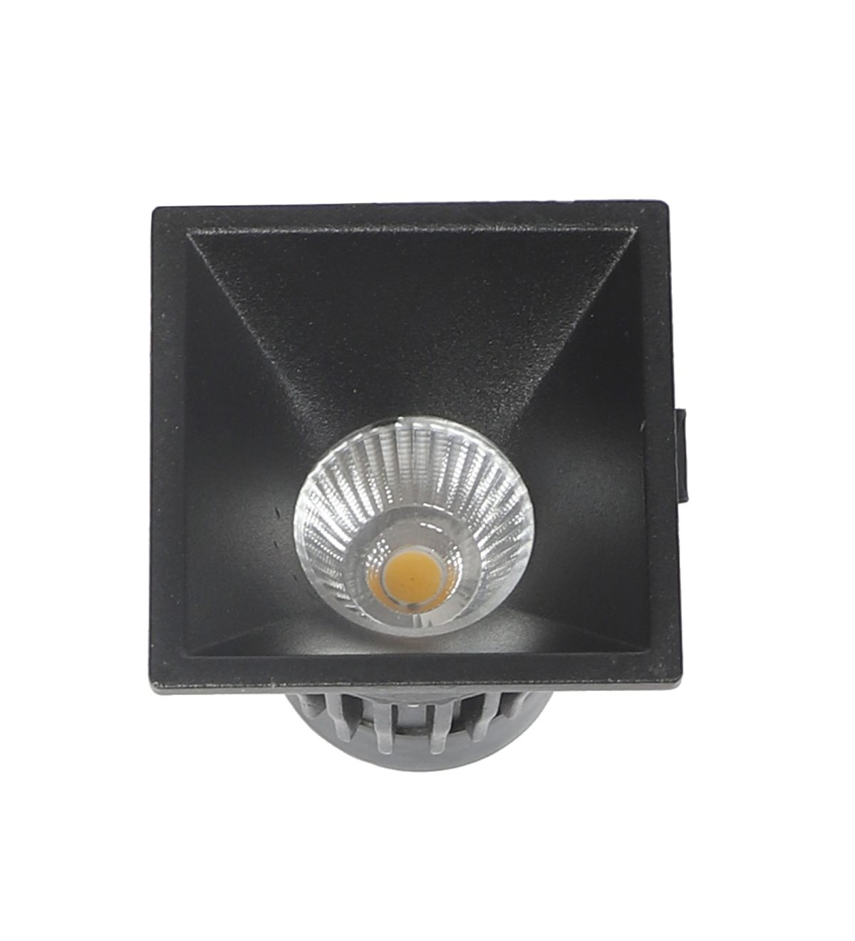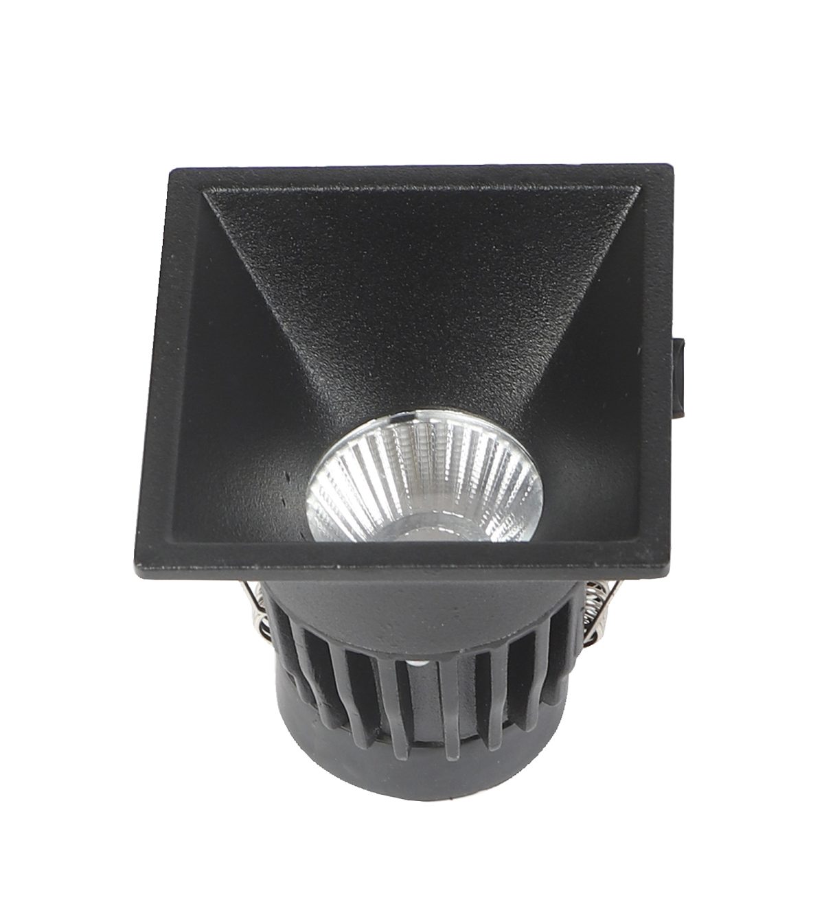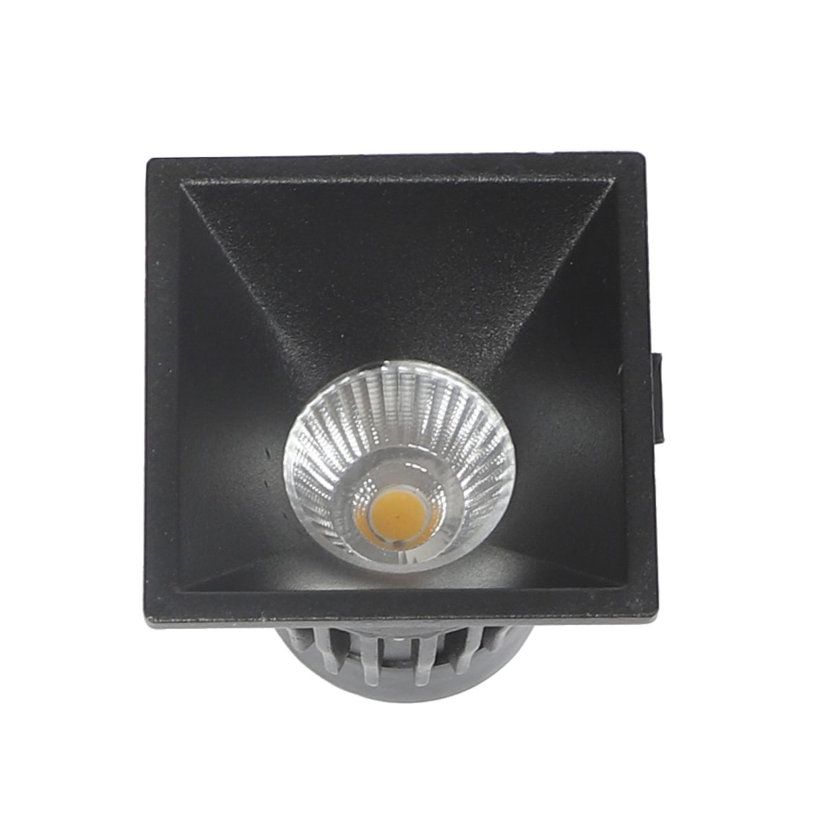 Powder coated black finish, aluminium die cast square 12W LED COB concealed ceiling light with top branded Bridgelux LED and Philips or equivalent LED driver. Application includes both indoor and outdoor ceilings. Available in 3000K, 4000K and 6000K ie warm white, nuetral white and white light output. 5000K colour temperature also available.