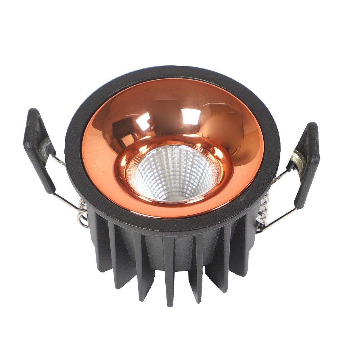 Powder coated black finish with rose gold reflector, aluminium die cast round 7W 3 in 1 LED COB concealed ceiling light with top branded Bridgelux LED and high quality LED driver. Application includes both indoor and outdoor ceilings. Scene Switch Feature : With it’s scene switch feature the downlighter can change it’s color into three modes i.e Cool Day Light, Natural White and Warm White. ON/OFF of the switch in 7 seconds leads to the change in color. Choose the color of your downlighter according to your mood.
