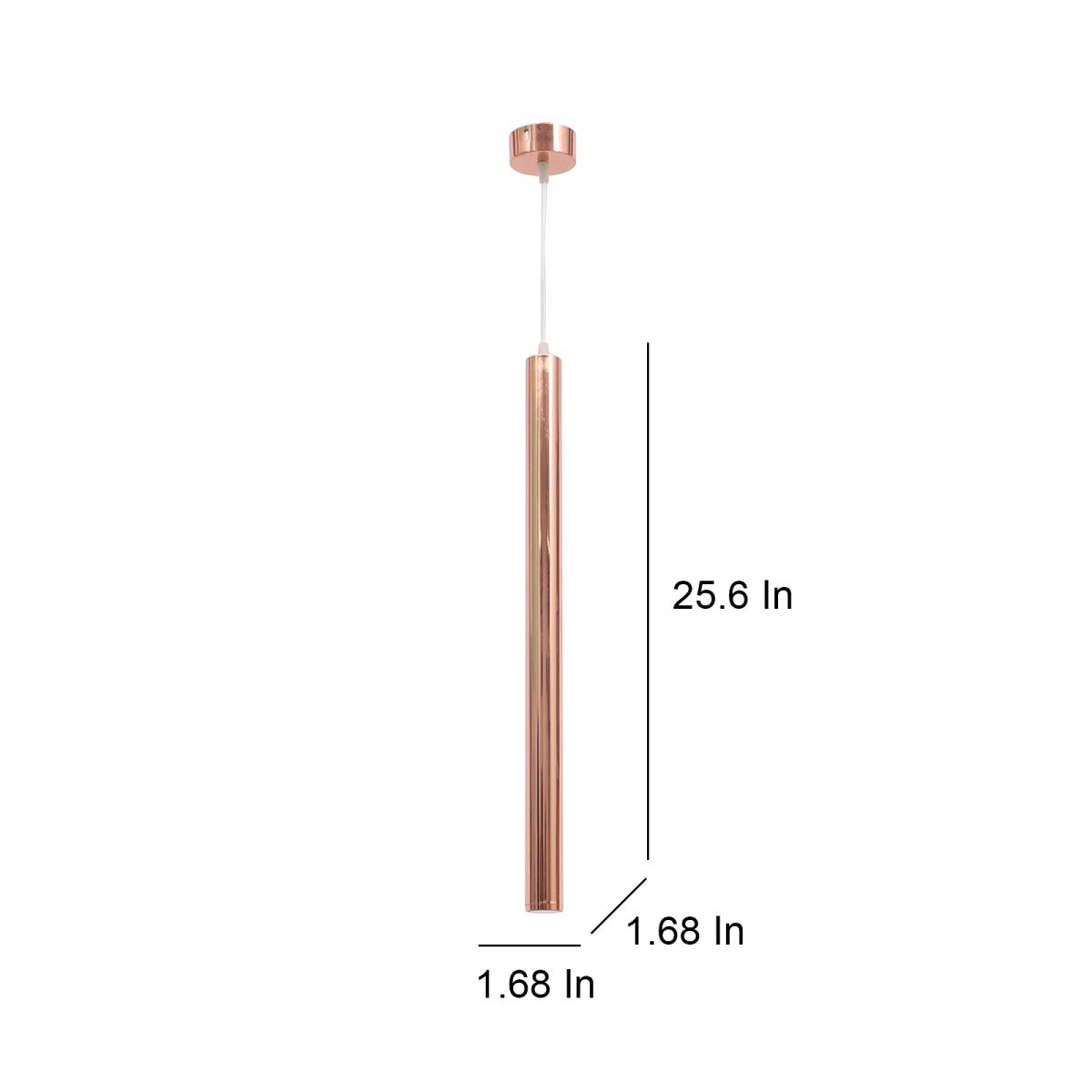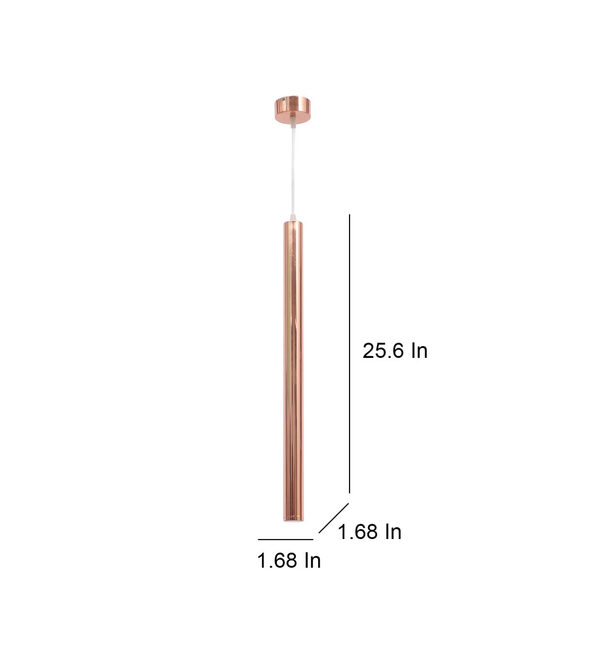 Copper sleek, modern, 12 watt LED hanging light having top branded LED and driver warm white (yellow) light output The suspension can be adjusted at time of installation to the desired height. Can be made available in a cluster of multiple quantities with round, square or rectangular base as per requirement . Application includes both residential and commercial premises wherever it matches with your interiors. Can be customized as per requirement in terms of finish, wattage, height, diameter.