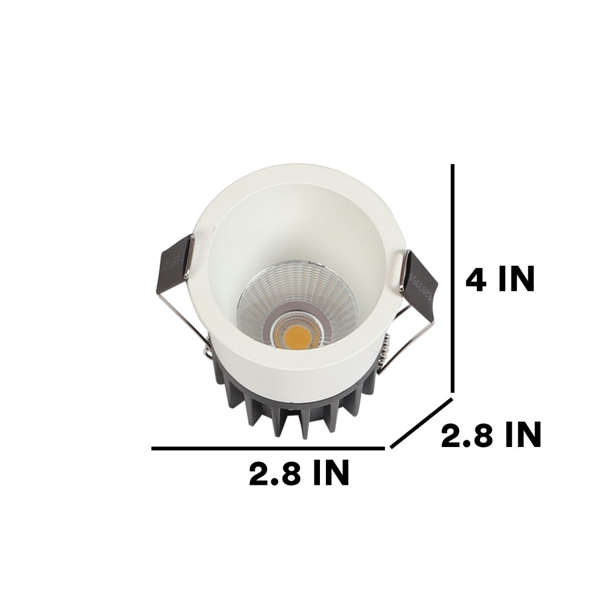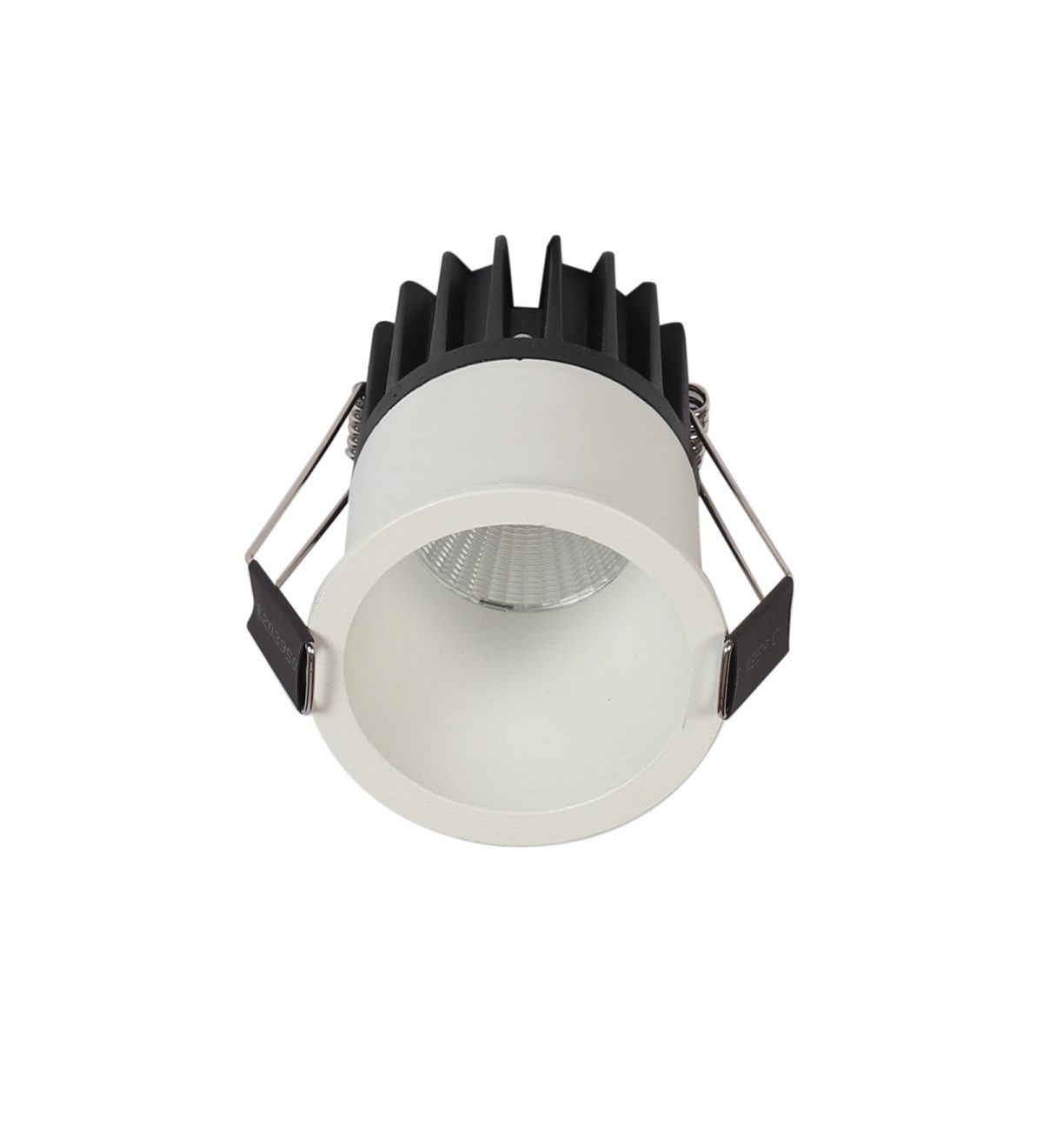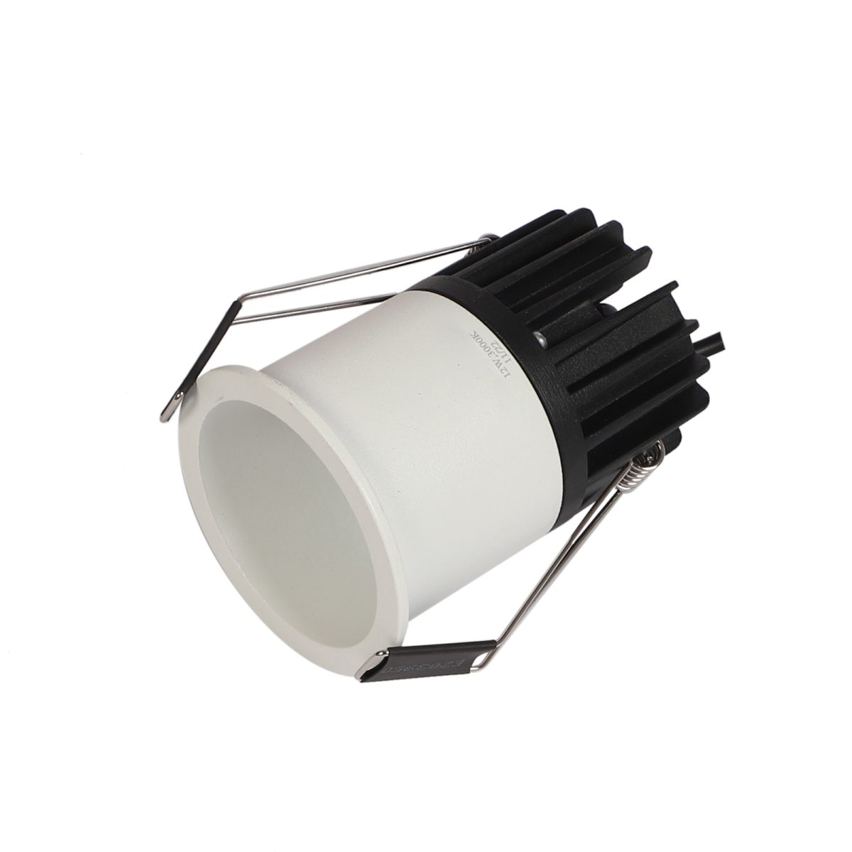 Recessed type 12 watt LED down light in white finish.