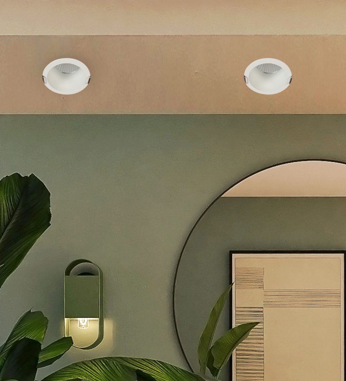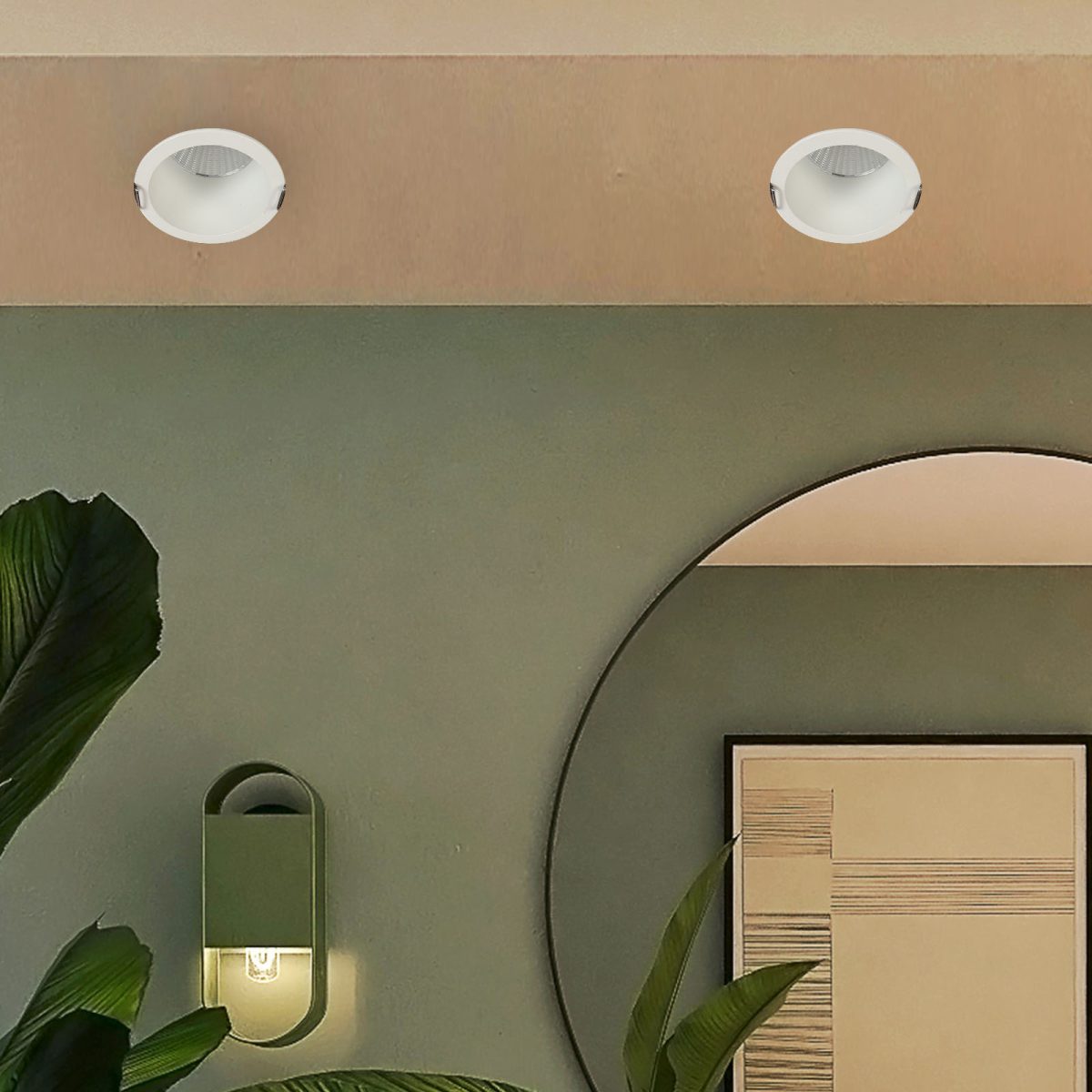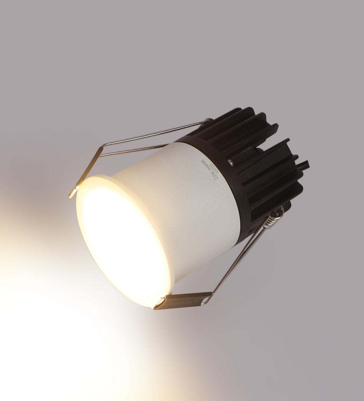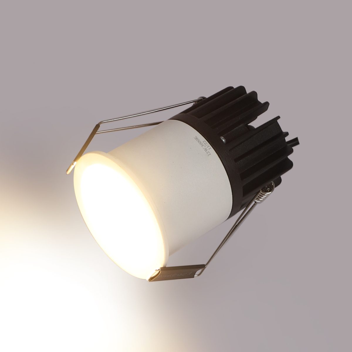 Recessed type 12 watt LED down light in white finish.