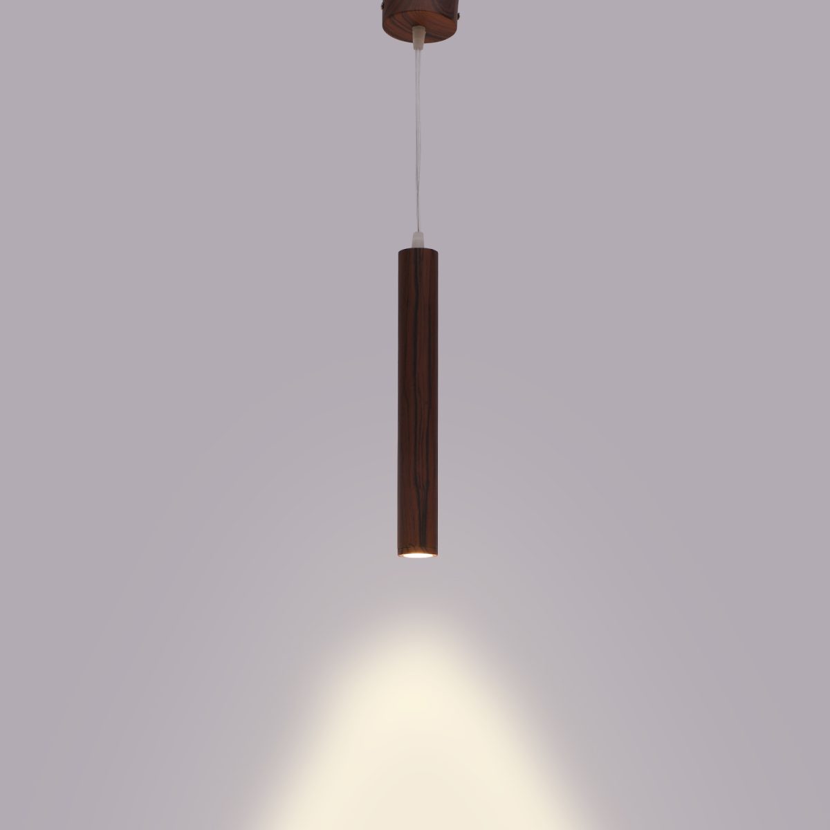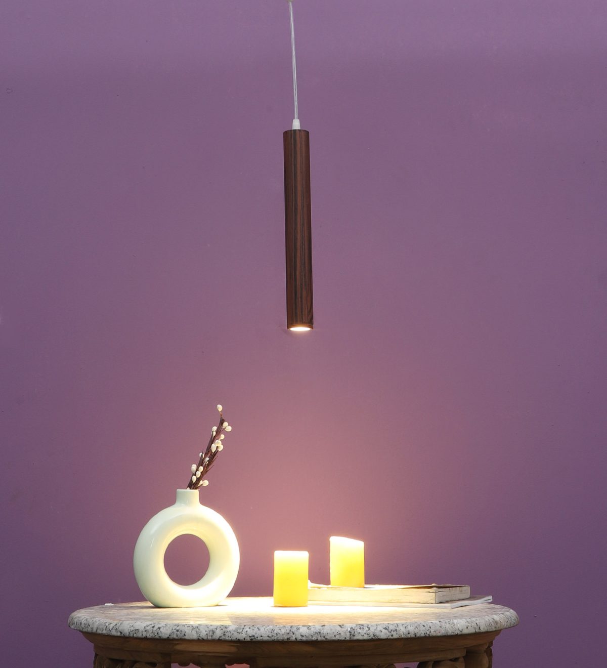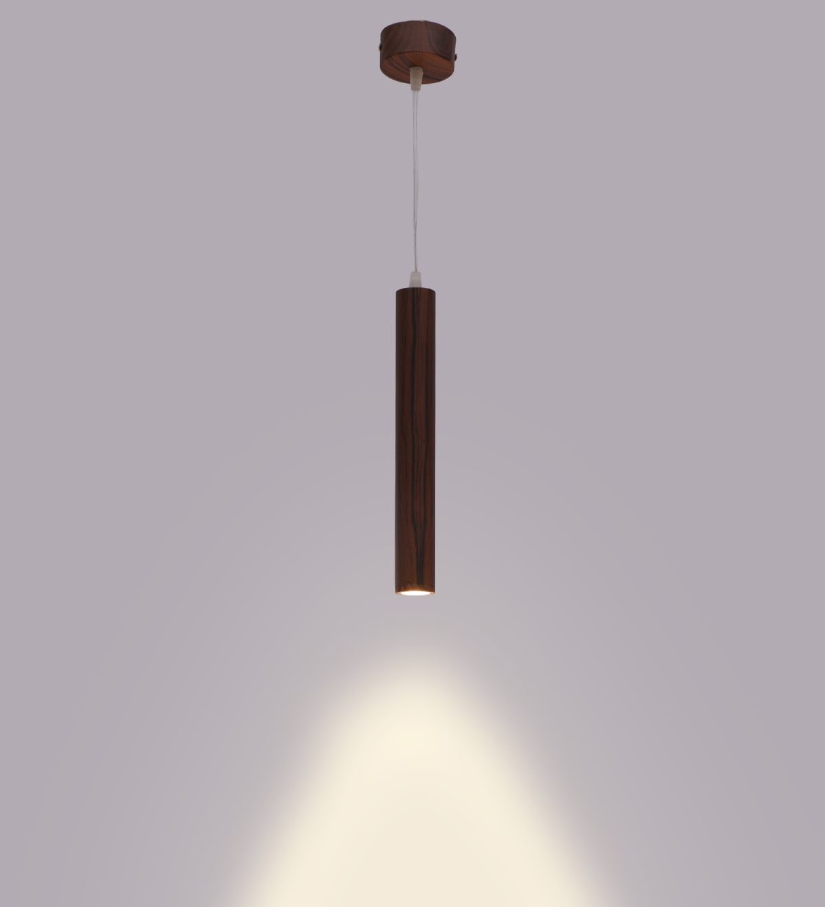 Brown premium wood finish, sleek, modern, 12 watt LED hanging light having top branded LED and driver warm white (yellow) light output The suspension can be adjusted at time of installation to the desired height. Can be made available in a cluster of multiple quantities with round, square or rectangular base as per requirement . Application includes both residential and commercial premises wherever it matches with your interiors. Can be customized as per requirement in terms of finish, wattage, height, diameter.