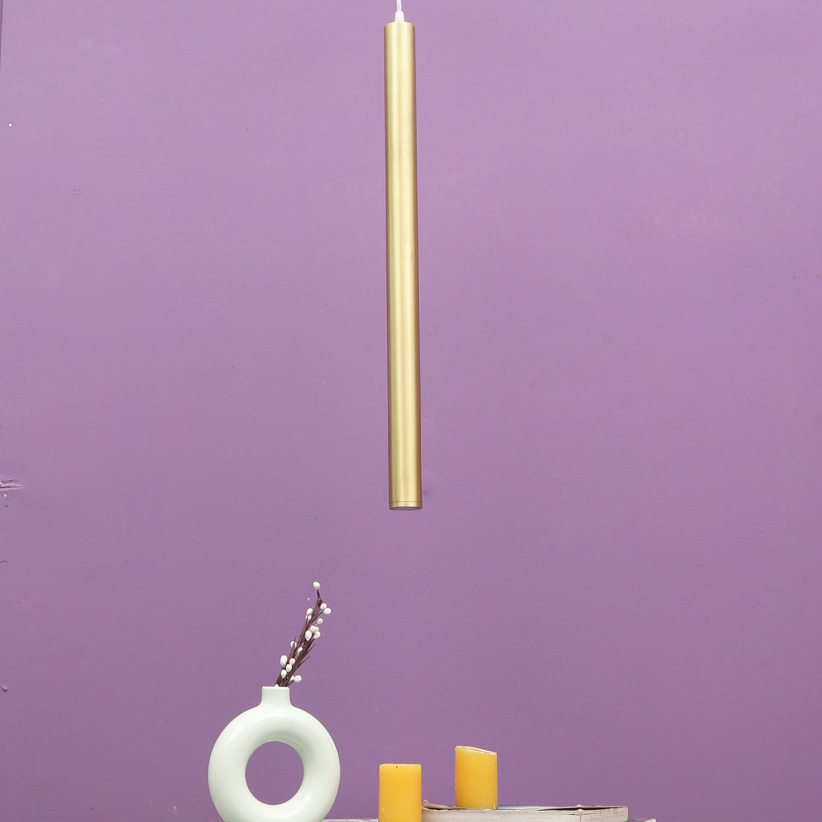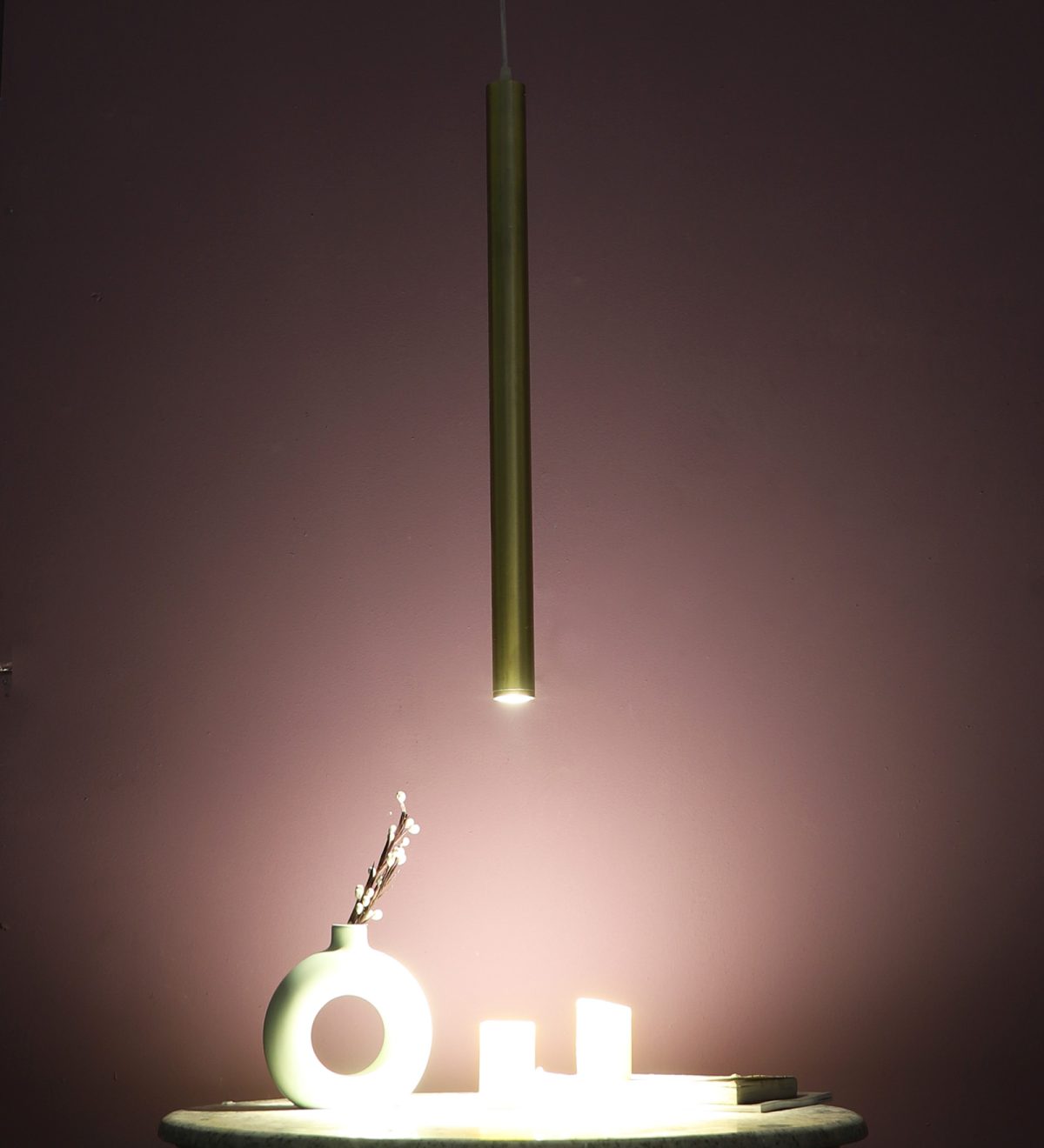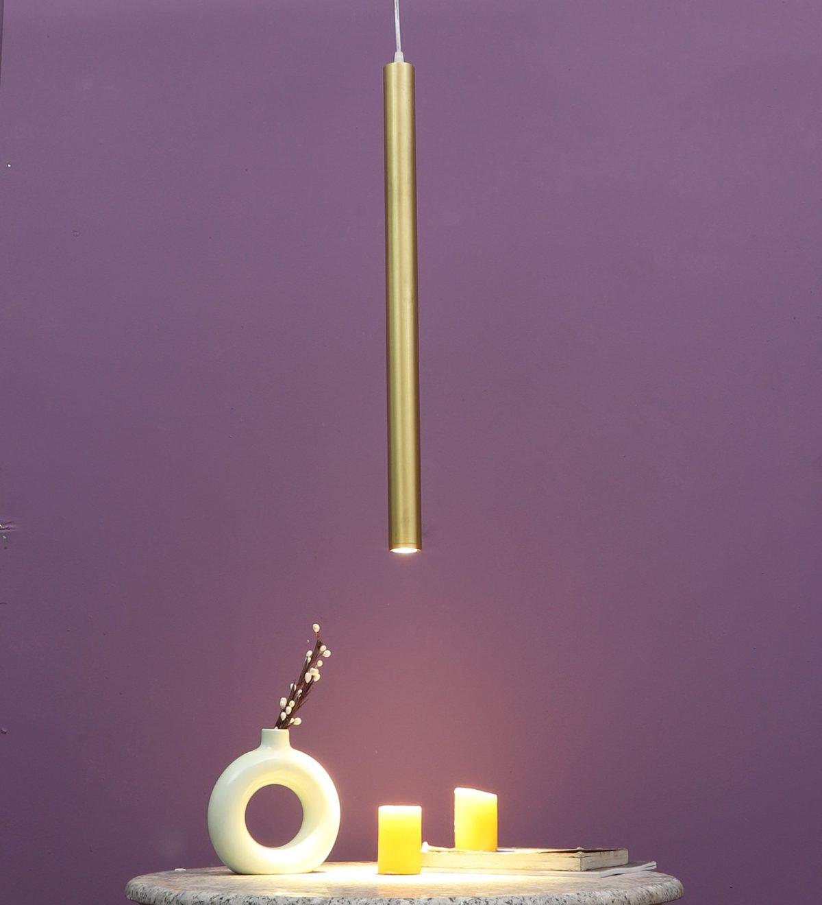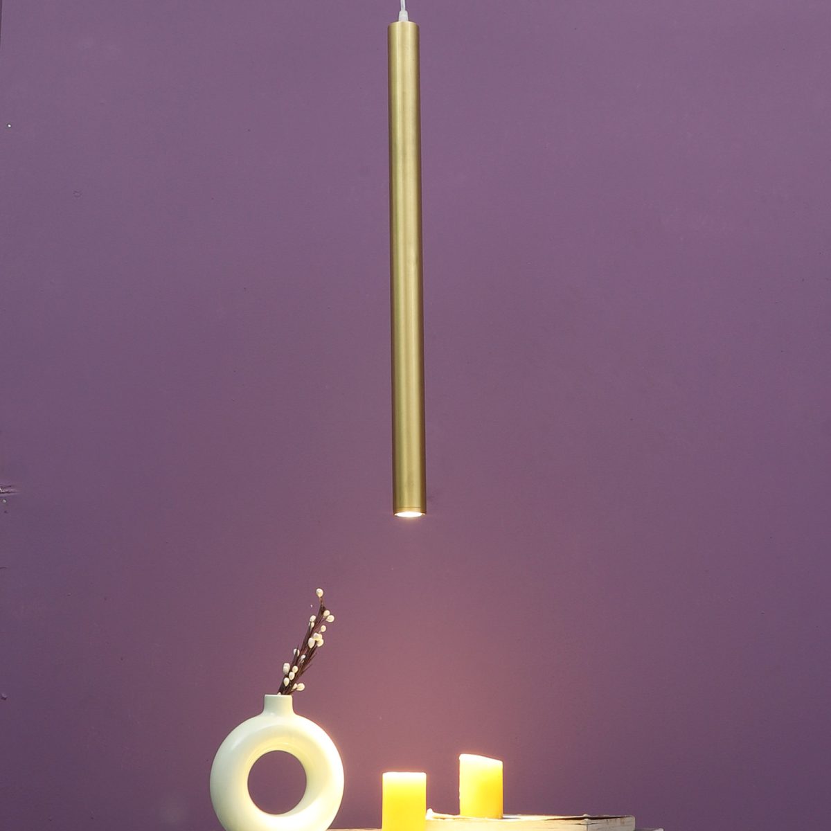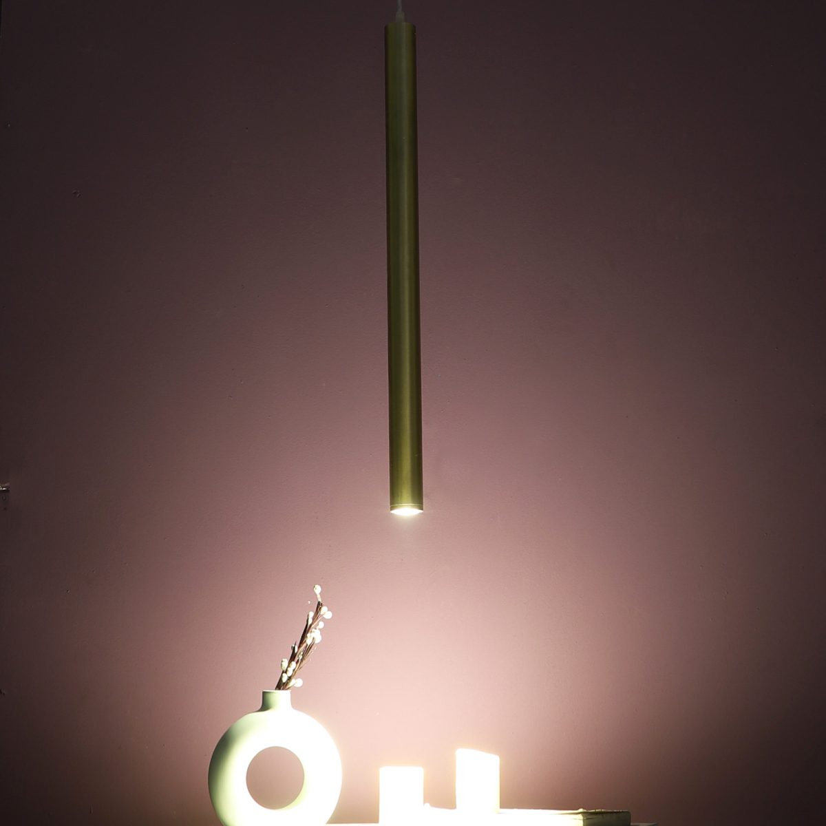 Gold finish, sleek, modern, 12 watt LED hanging light having top branded LED and driver warm white (yellow) light output The suspension can be adjusted at time of installation to the desired height. Can be made available in a cluster of multiple quantities with round, square or rectangular base as per requirement . Application includes both residential and commercial premises wherever it matches with your interiors. Can be customized as per requirement in terms of finish, wattage, height, diameter.